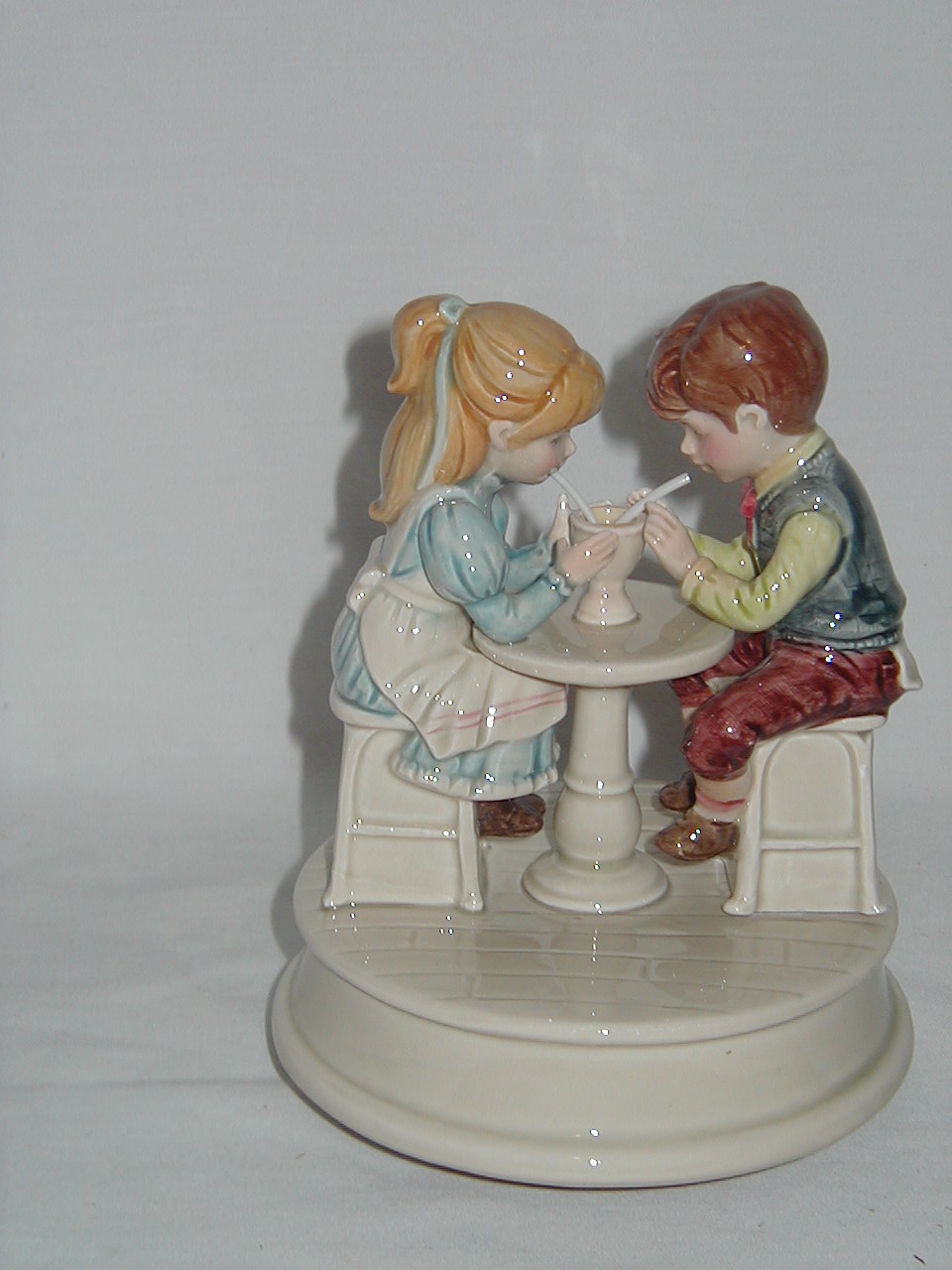 Otagiri Boy and Girl Sipping with Straws from One Cup