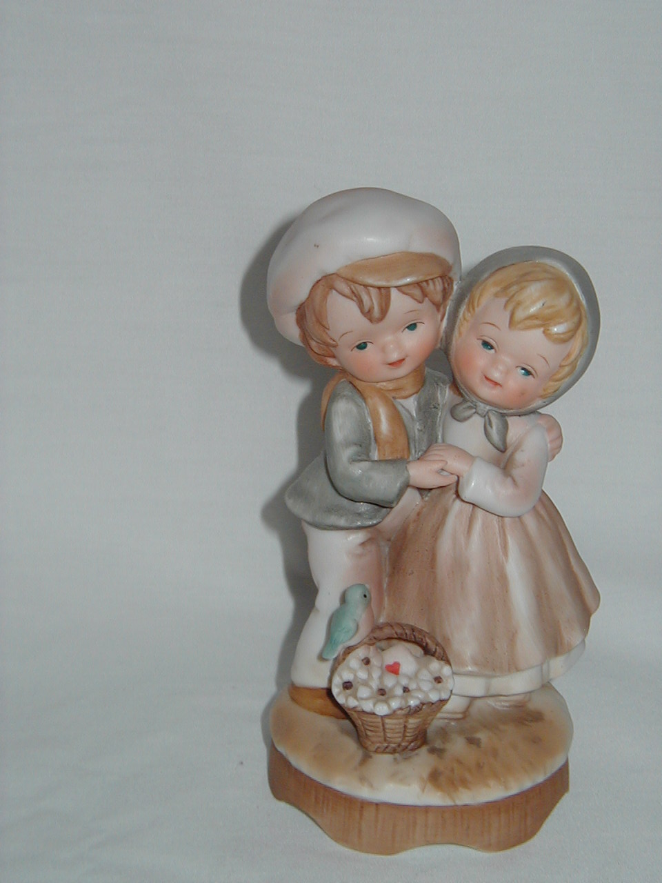 Boy and Girl Holding Each Other with Basket and Bluebird
