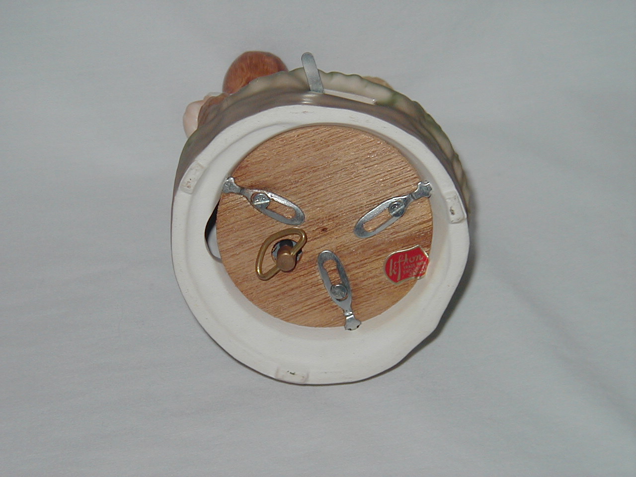 This collection of Old Japan Figurines i consider to be the best example of what Japan has contributed to the world of small and affordable music boxes. All the figurines are done in the same style and coloring, are well executed in detail and are easily recognizable. They can even be compared with Hummel's. I estimate the period they were being produced as the sixties and seventies (no markings, therefore an estimate). A great many different objects in this style were produced of which this collection gives an idea, although it is not complete by a long shot.