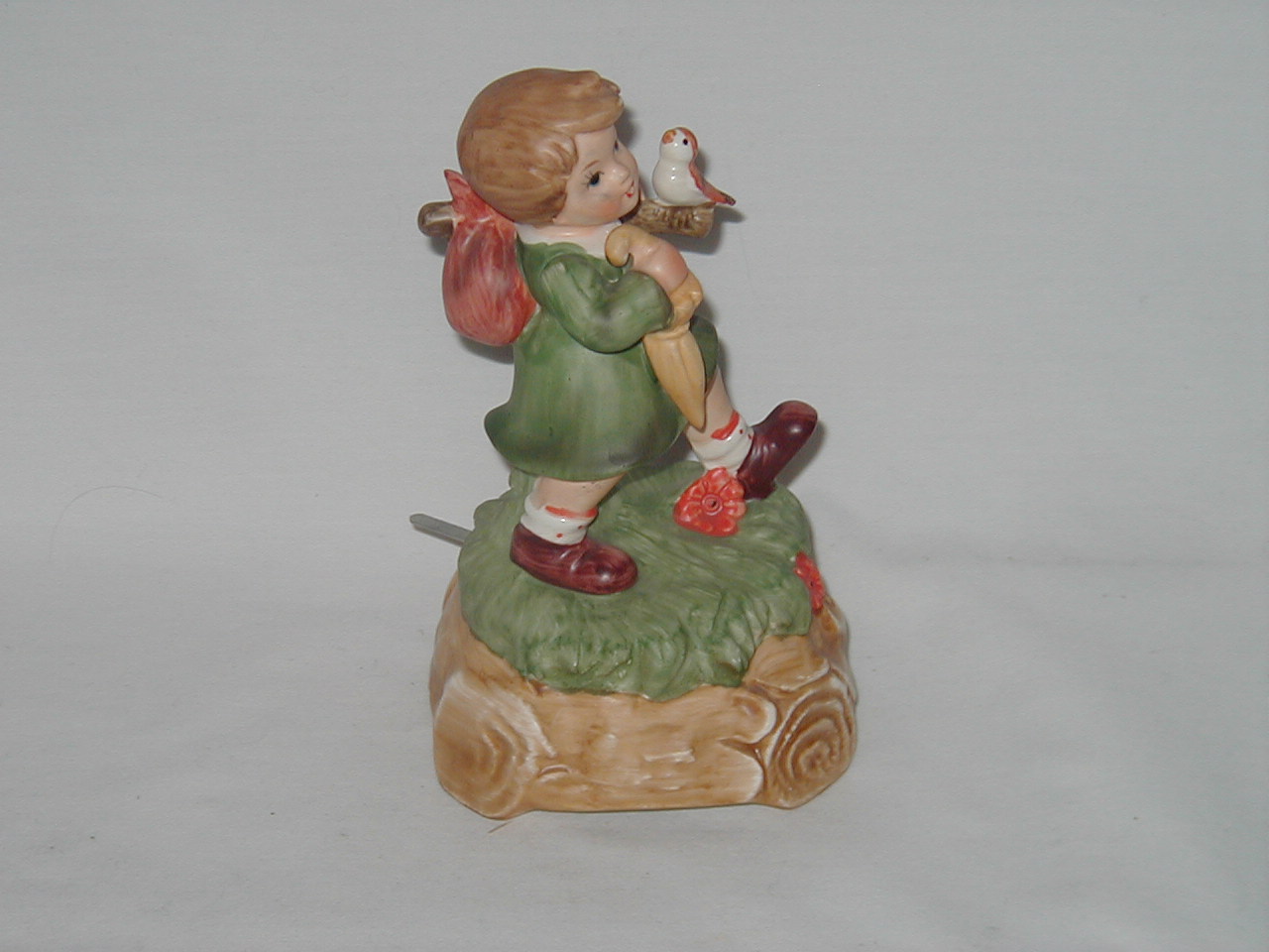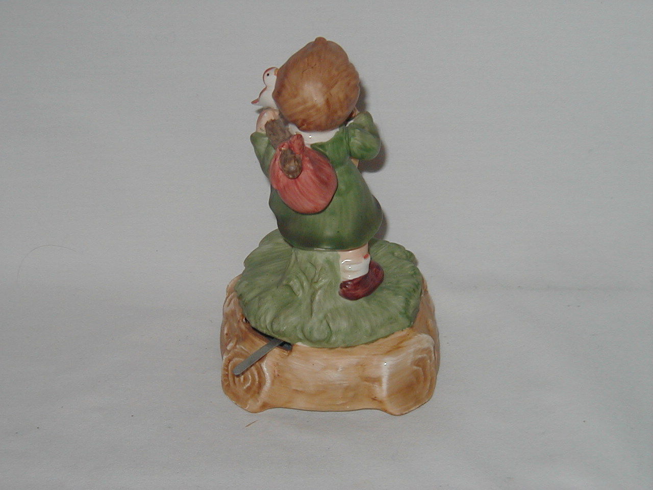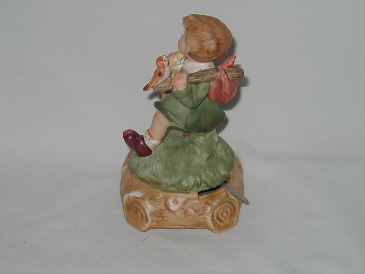 This collection of Old Japan Figurines i consider to be the best example of what Japan has contributed to the world of small and affordable music boxes. All the figurines are done in the same style and coloring, are well executed in detail and are easily recognizable. They can even be compared with Hummel's. I estimate the period they were being produced as the sixties and seventies (no markings, therefore an estimate). A great many different objects in this style were produced of which this collection gives an idea, although it is not complete by a long shot.