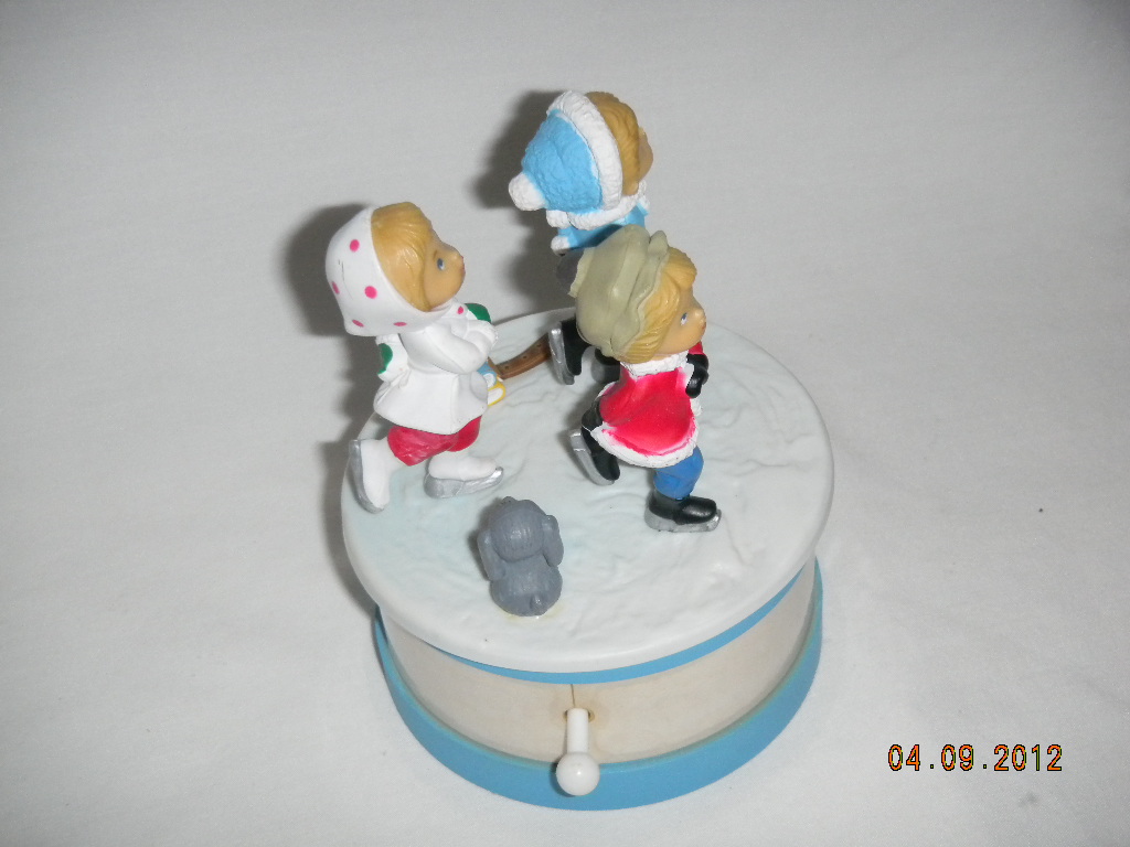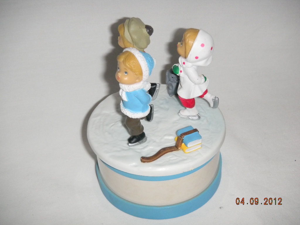 Platform rotates and 3 skaters rotate on axis on platform. See Remarks on Condition. |