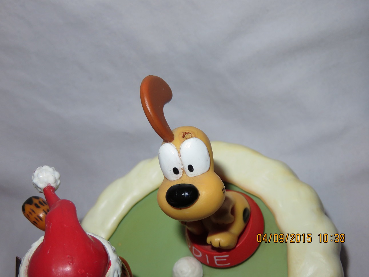 Garfield rotates with platform and Odie rotates separatedly on dog trough by himself with music. |
