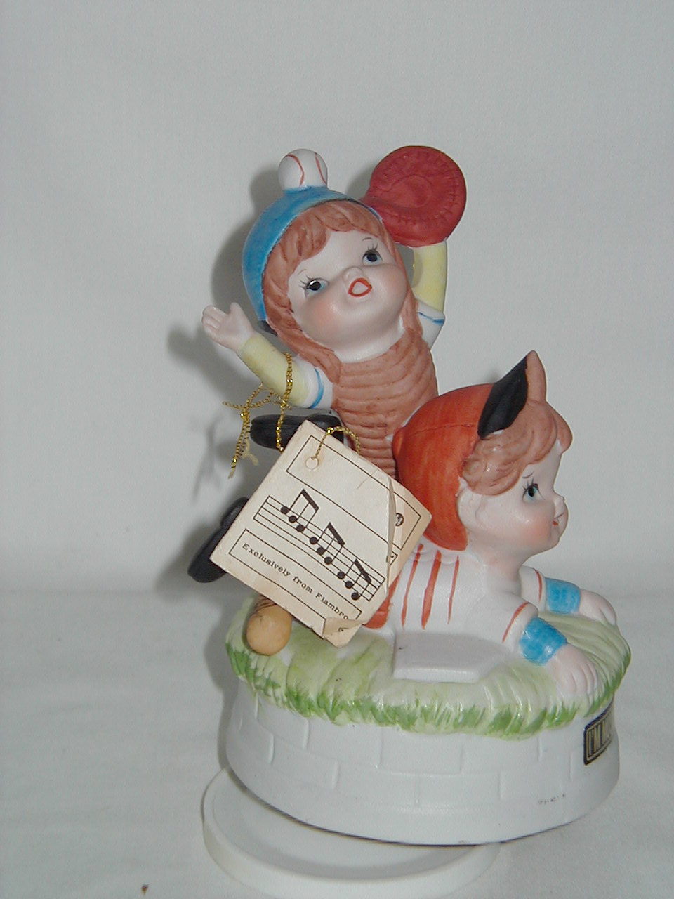 Flambro Two Kids on Bamboo Raft Fishing Fisch hooked Pushing Staff