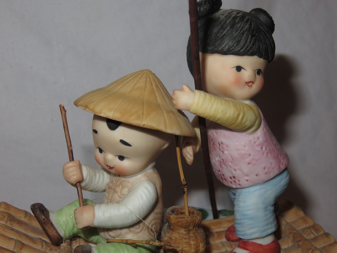Fair, fishing rod broken, pushing staff likely not original, otherwise excellent |