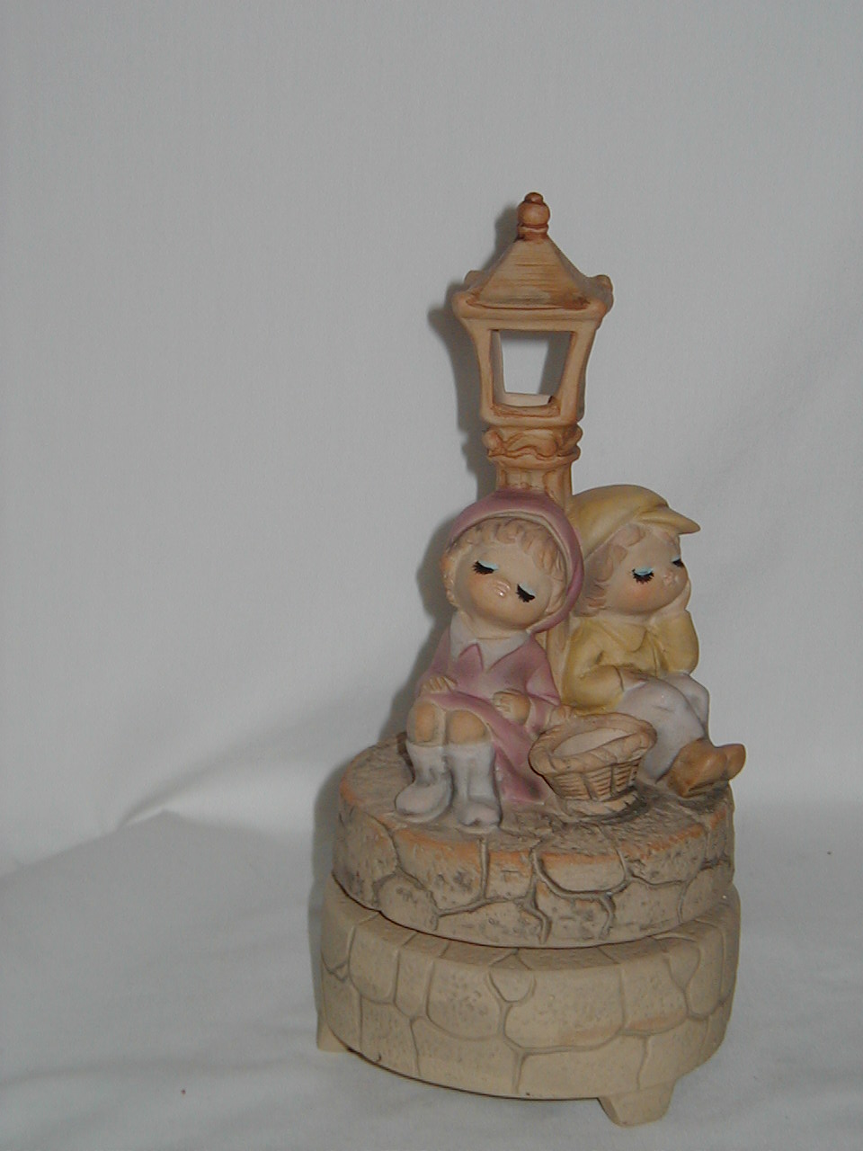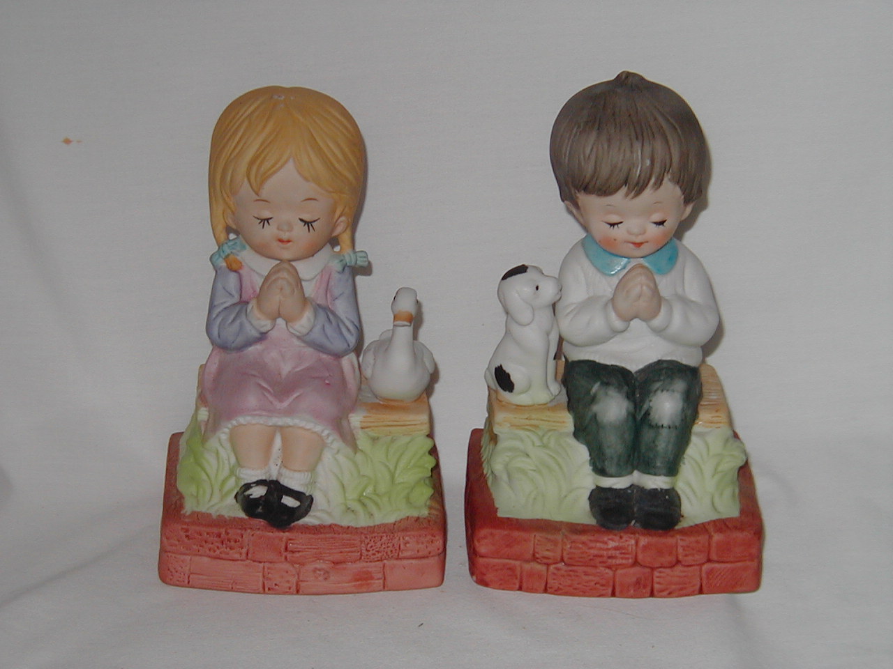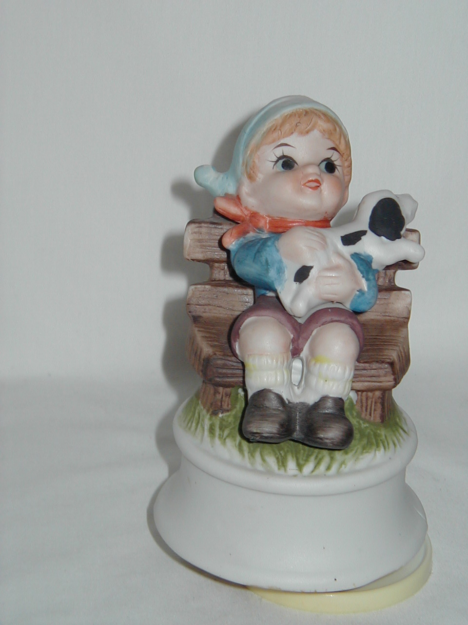 Lefton Boy with Apple Girl with Dog Hamper with Apples