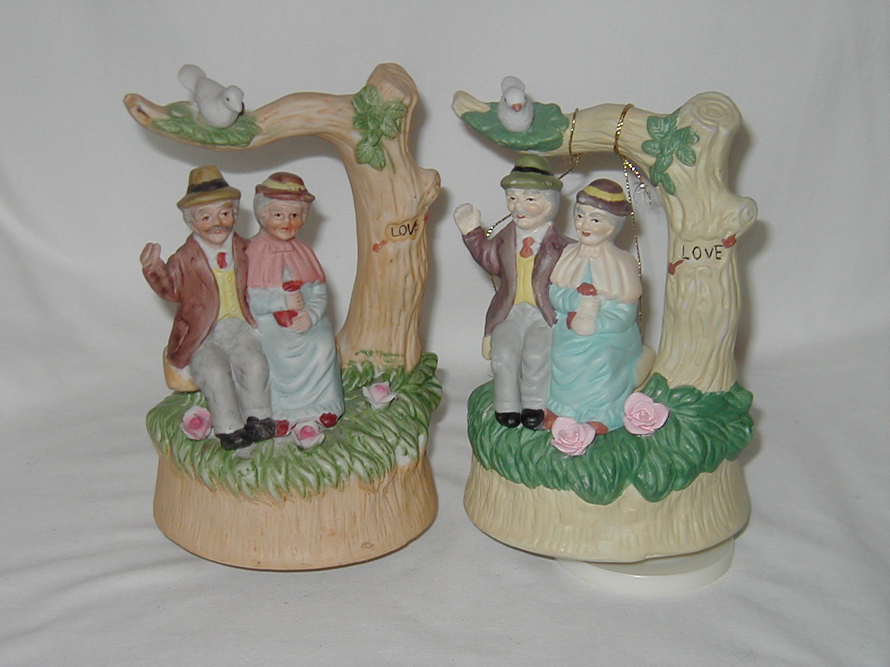 Two Look-Alike Old Lady and Gent on Swing under Tree (One MSR)