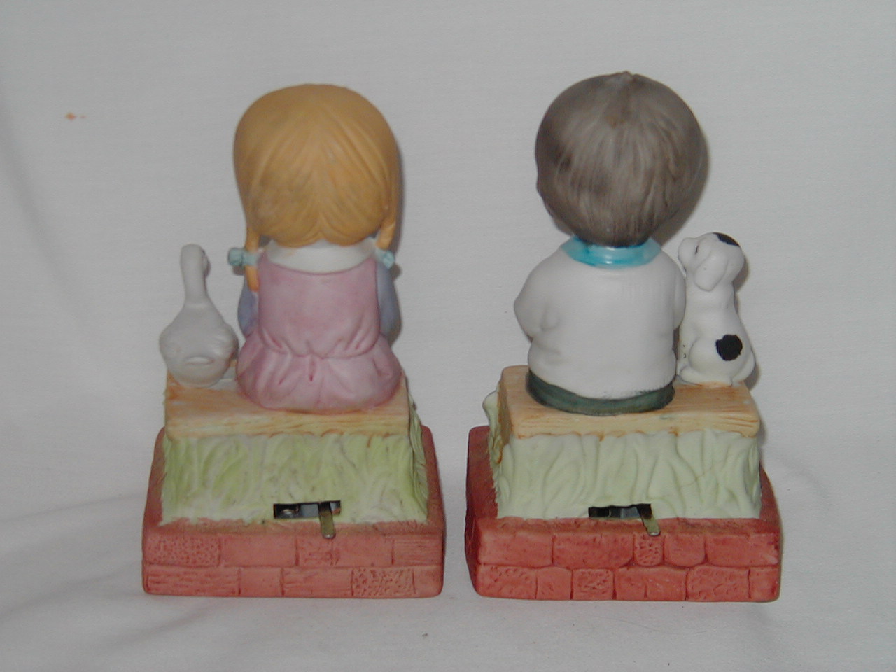 Boy fair and girl minor, beak goose partly broken off. From both wood bottoms delaminating/reglued. |