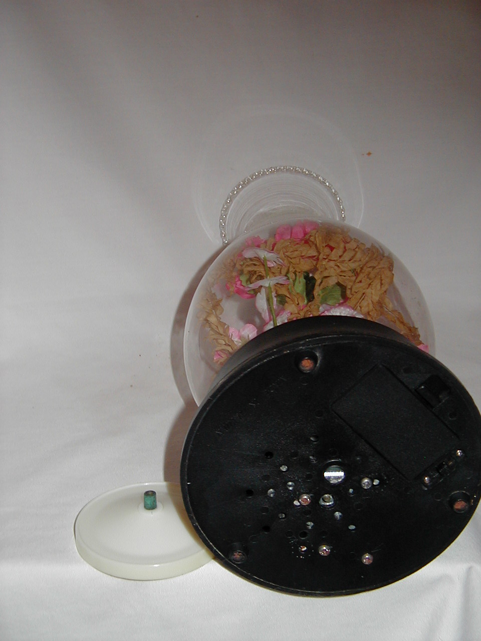 Yes, top flower with butterfly retracts and unfolds with music (butterfly appears and disappears in flower). Also rotates on foot. |