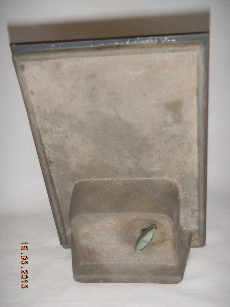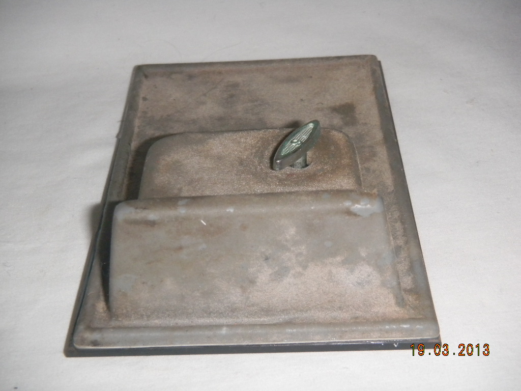 Key, metal, in back (shows ' S ' from Sankyo ). |