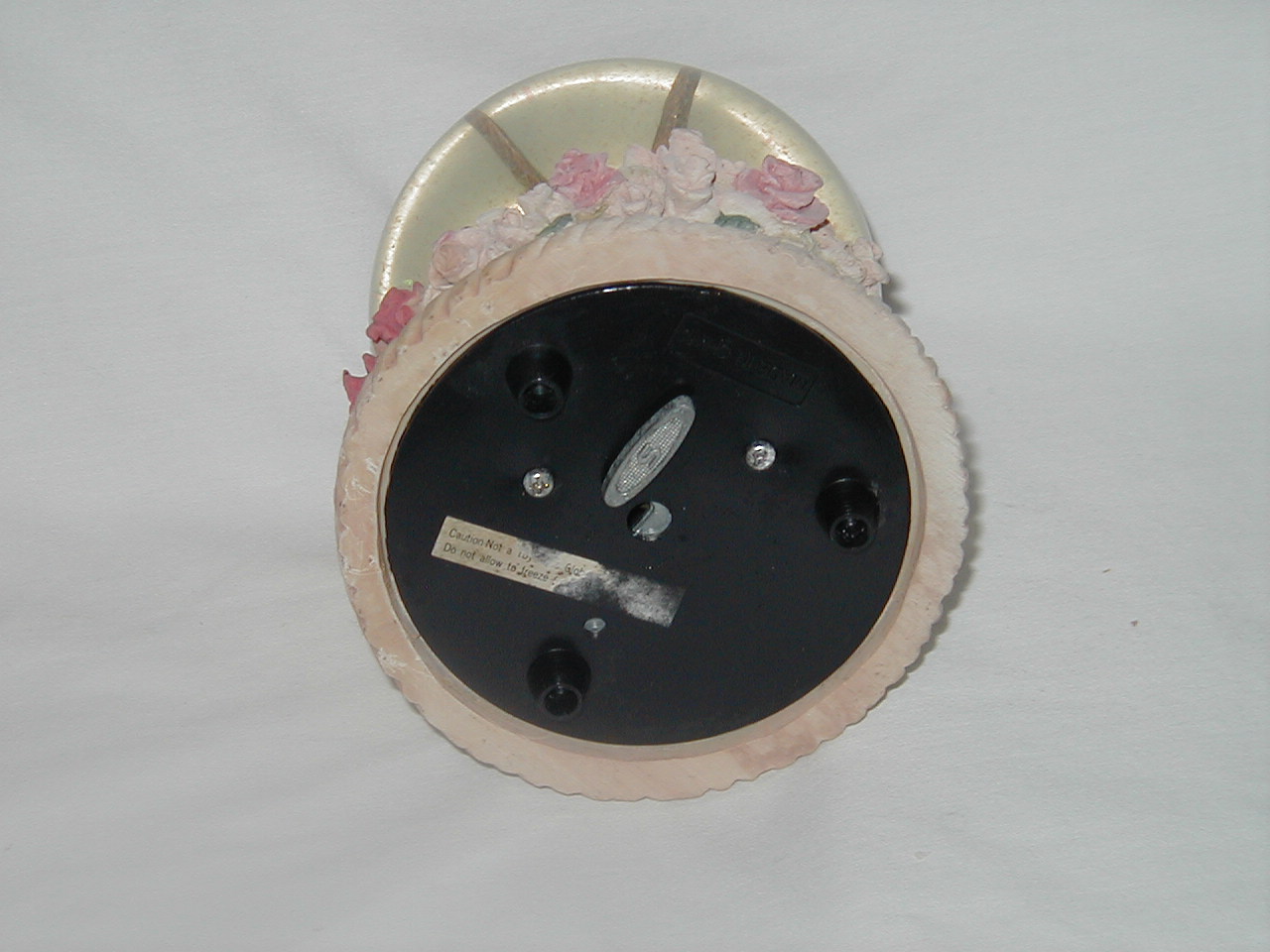 Glitter stuff inside globe slightly cloudy. Label on bottom: ' Caution: Not a Toy.....Do not allow to freeze.....'. (same as on others). |