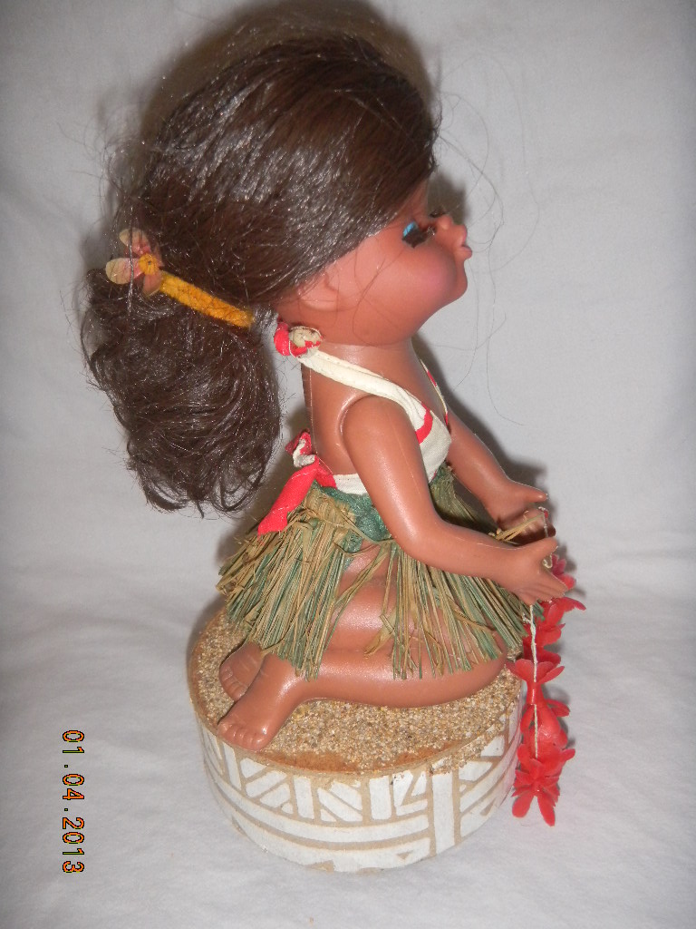 Yes, brown plastic, ' Made in Hong Kong ' (on top foot), ' 4 ' (under foot). |