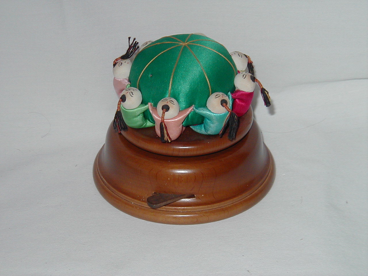 Yes, pin cushion rotates on pedestal with music. |