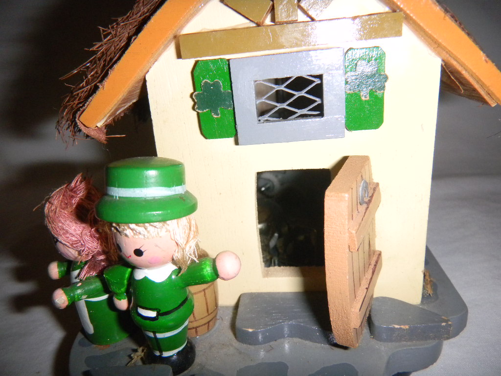 Door on cottage can be opened, only by hand, absolutely no connection to music mechanism. |