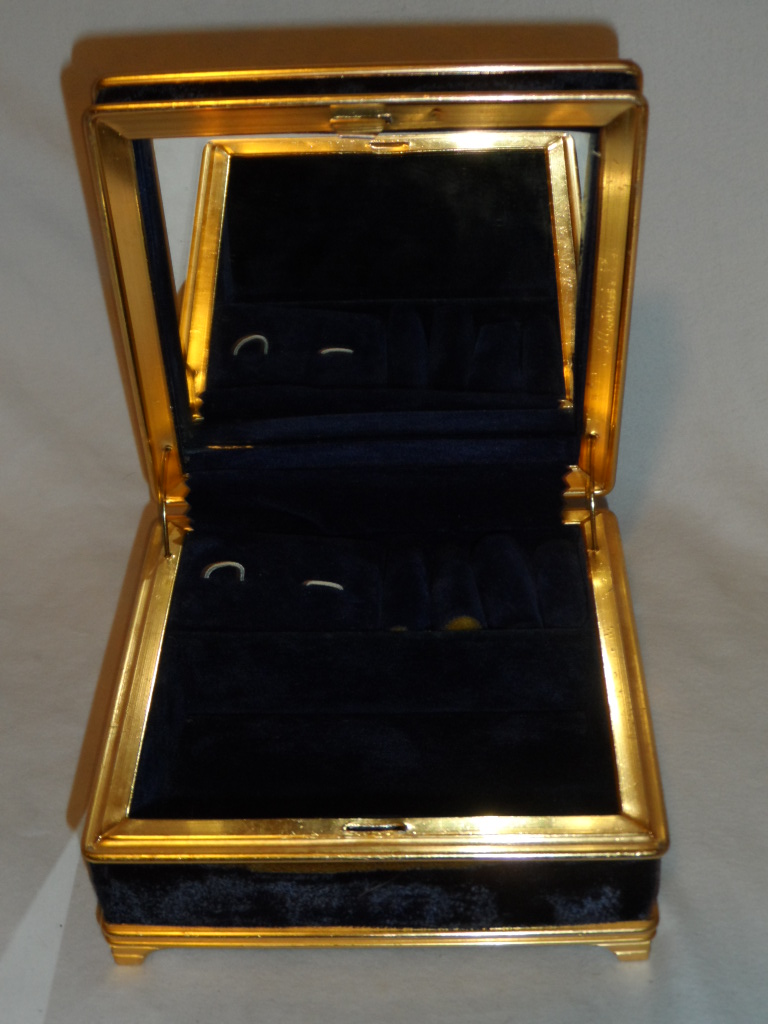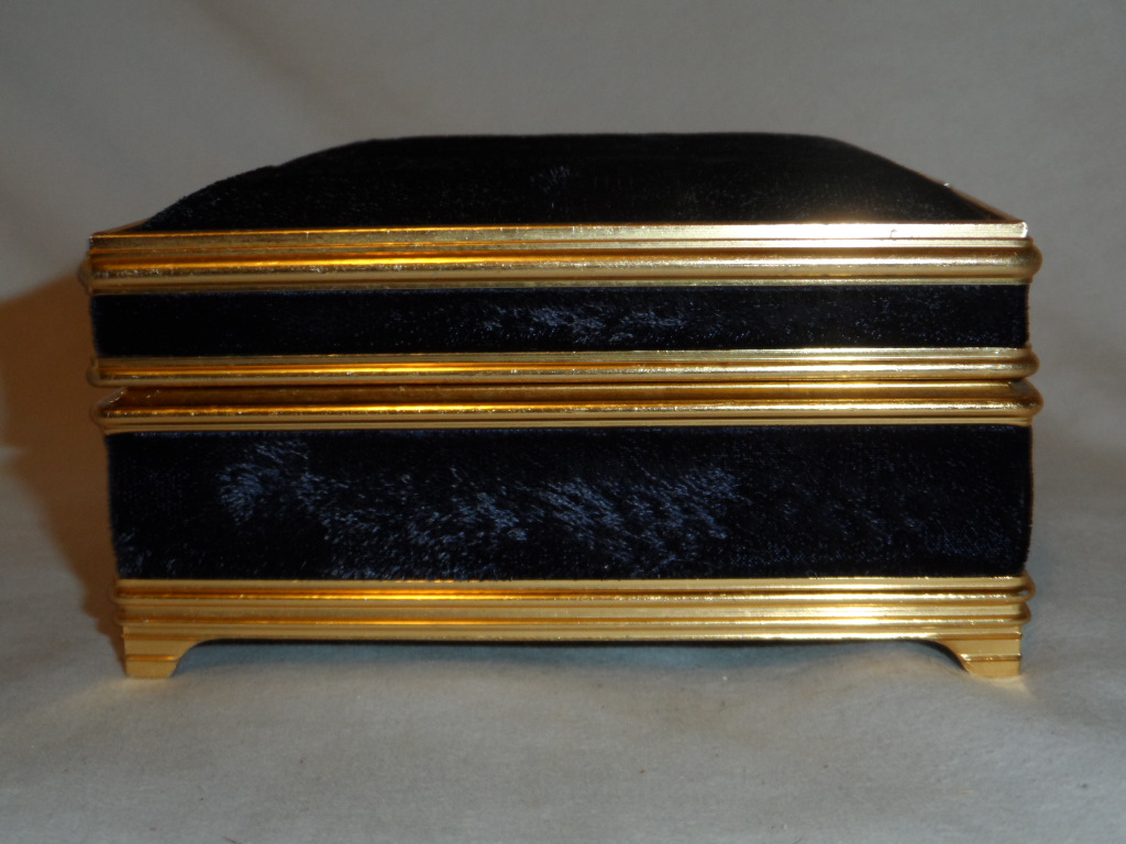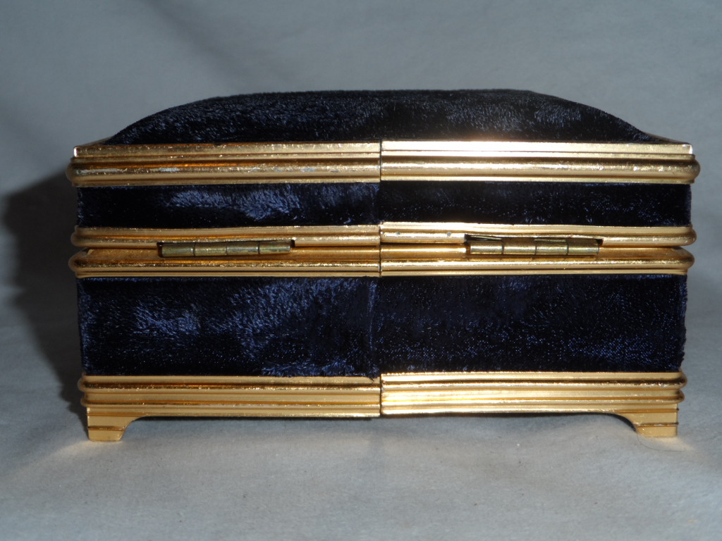 Goldtone metal with blue velvety cloth |