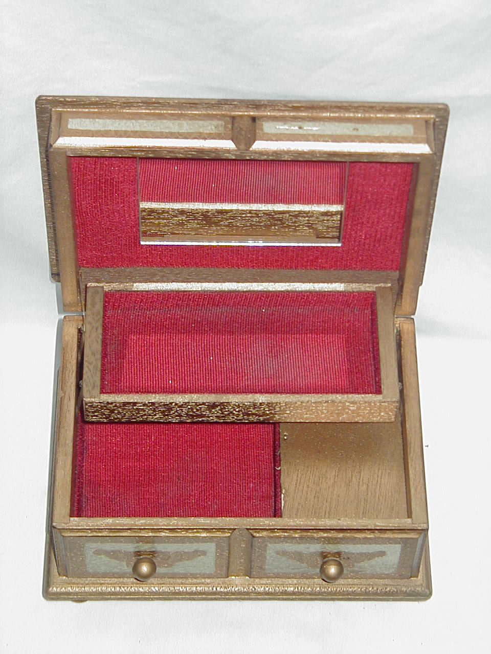Mirror on inside lid.