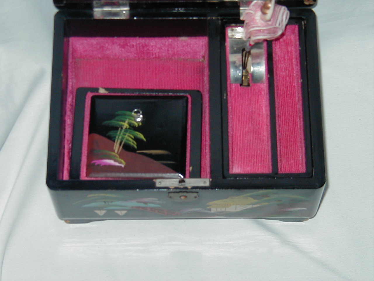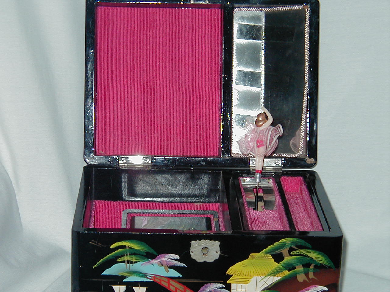 Black Lacquered Wood. 2-sisded mirror, sep. box, dancer |