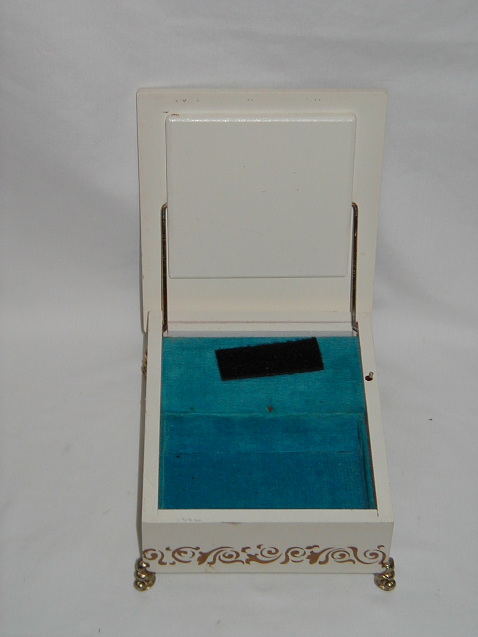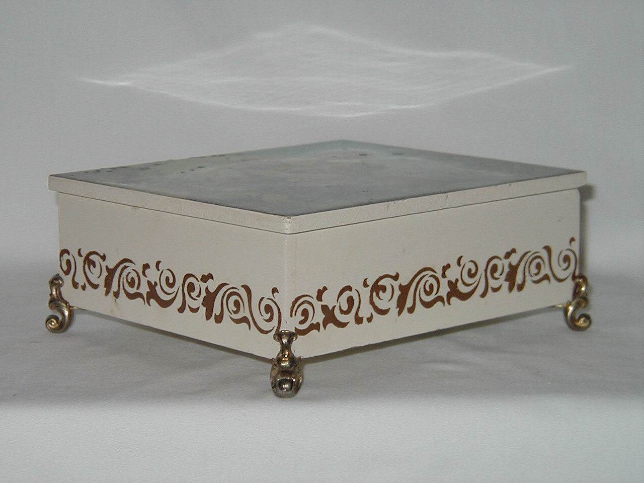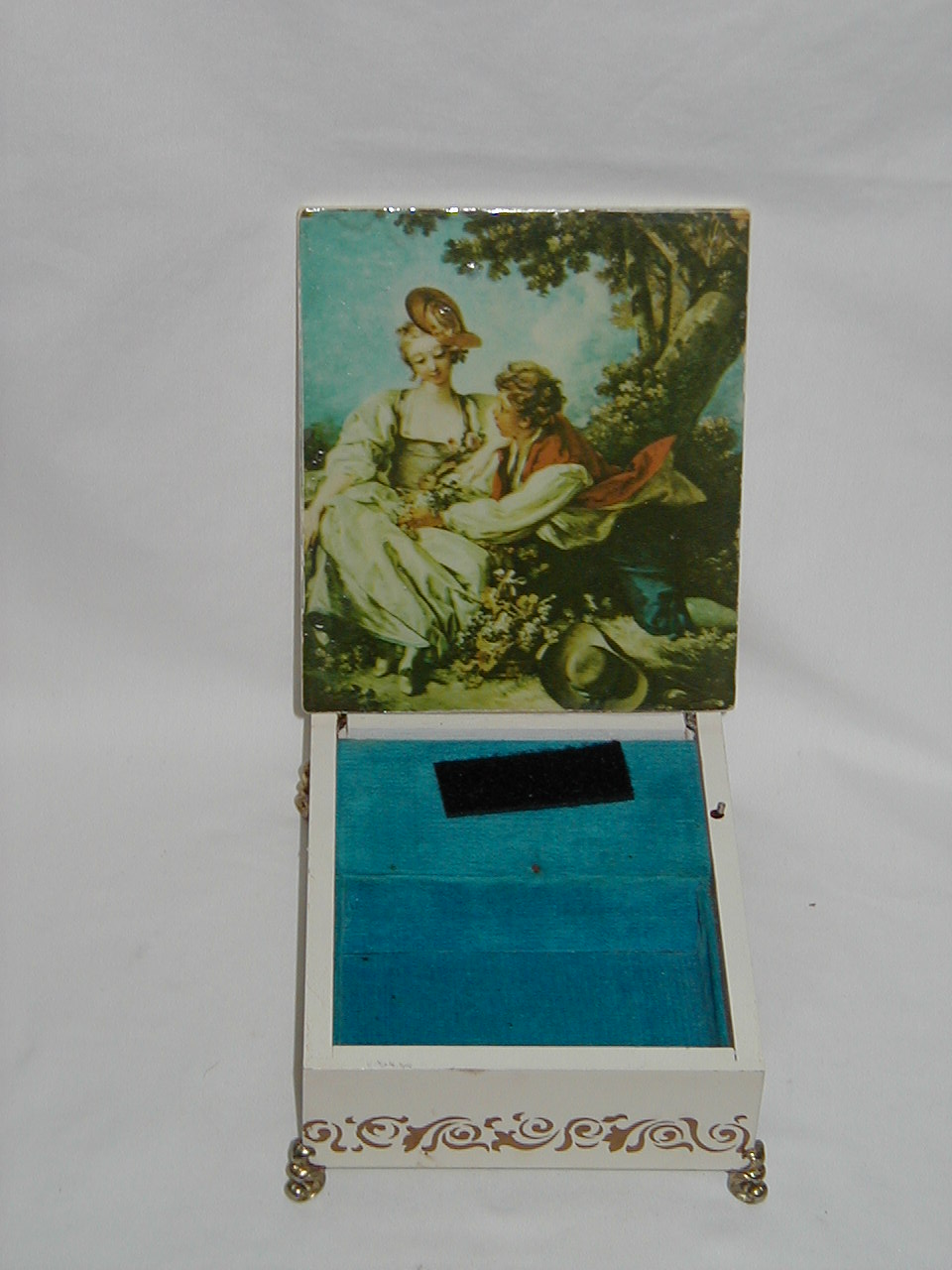 Lid flips over and in standing position can be shown both ways; see photo's.