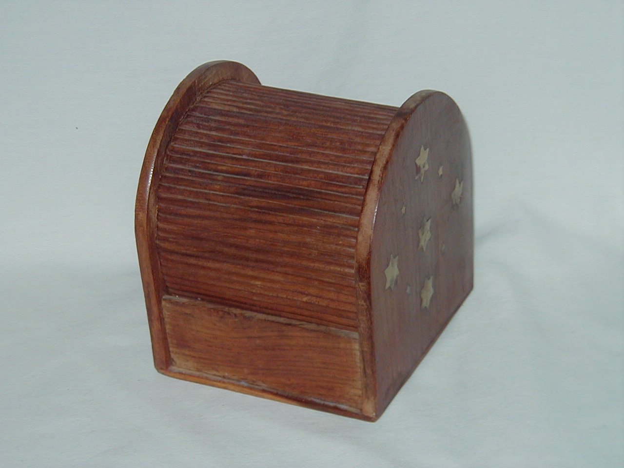 Bells play when rolltop is opened or closed (NO music mechanism). |