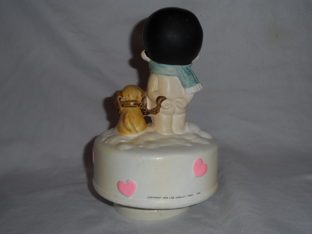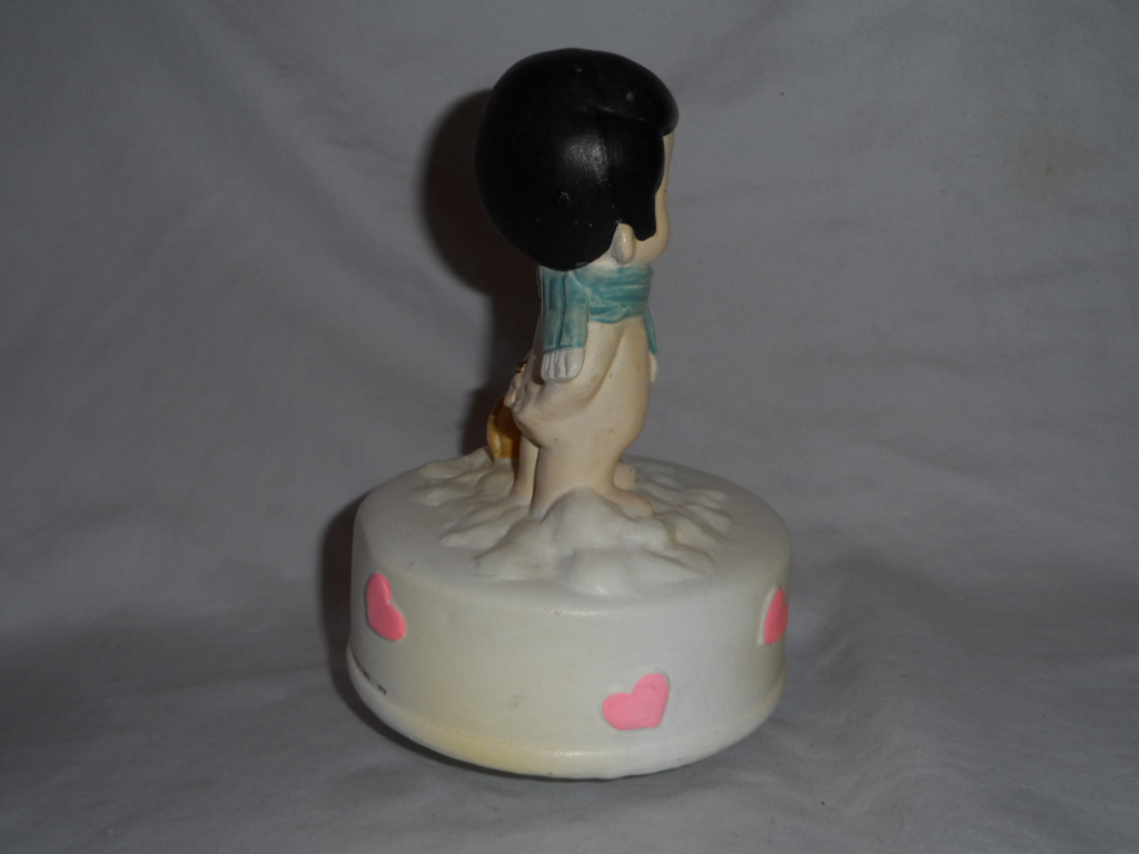 Item had Toyo mech. when acquired, with all parts in working condition, but cylinder did not and would not line up with wheels. Toyo cylinder placed in time correct Sankyo mech, with plastic axle/wheel, and works. Tune is therefore original. Key, as usual in this series, mentions LaureL Japan. |