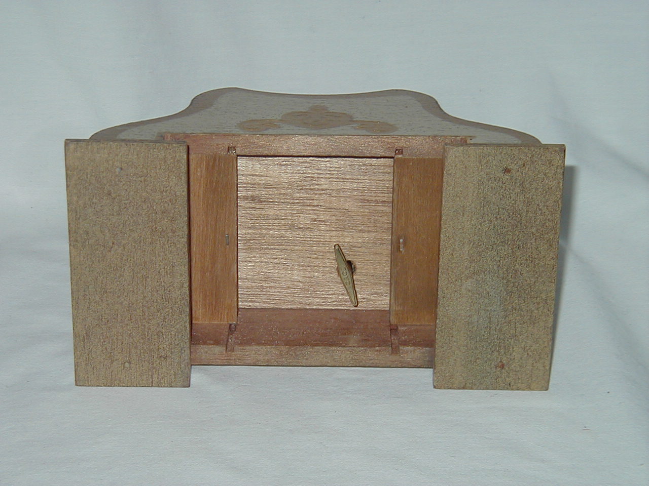 Key, metal, in bottom, after tray has been pulled out. |