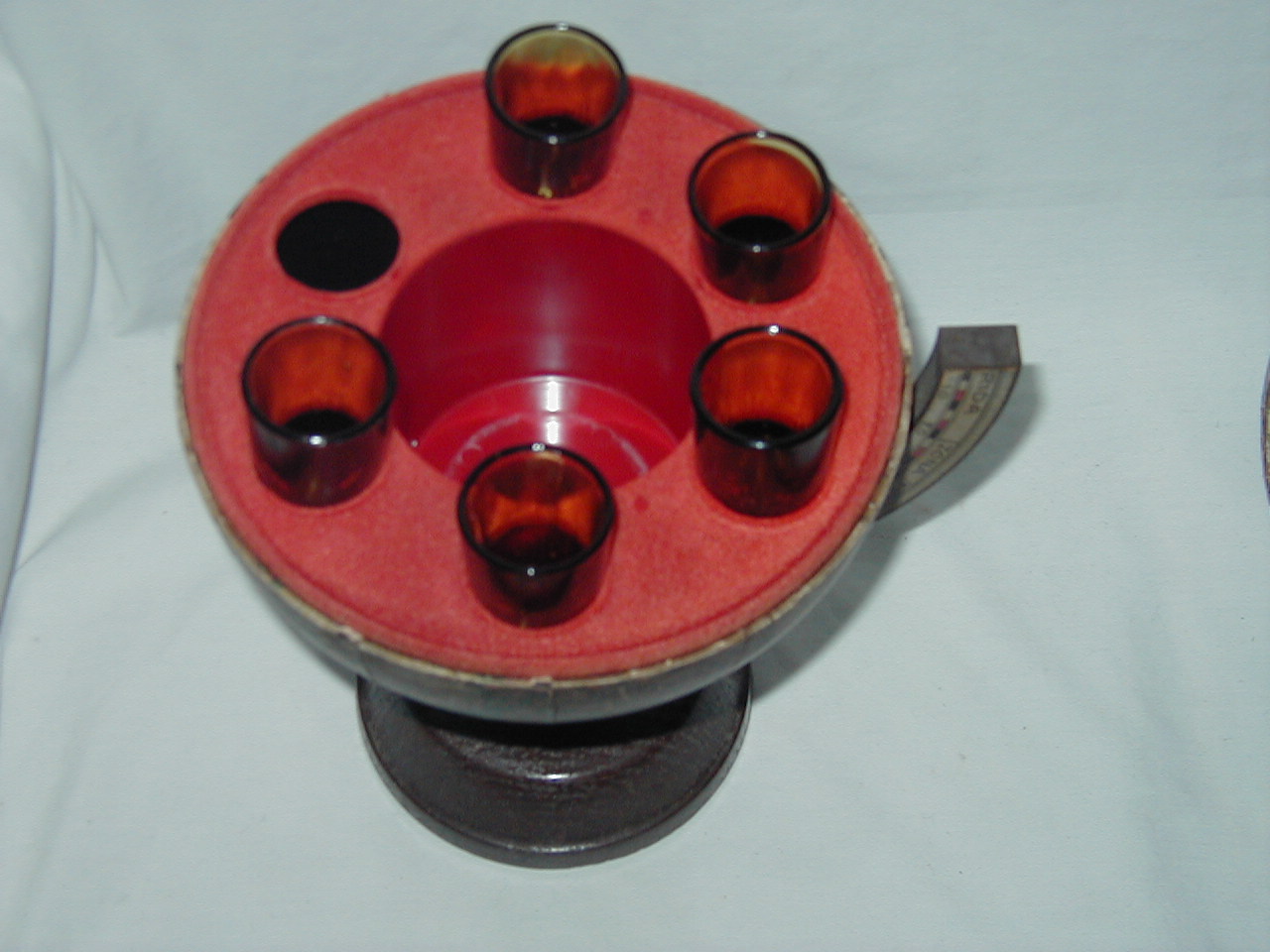 Minor, lots of wear, key (long) missing, as well as bottle and one glass. Front top missing. |