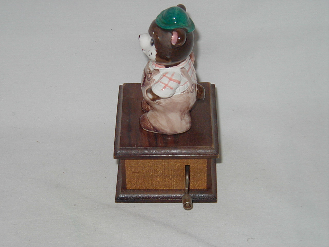 Crank handle manually on right side during which music plays |