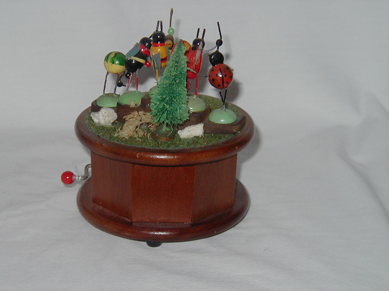Crank handle manually on right side during which music plays |