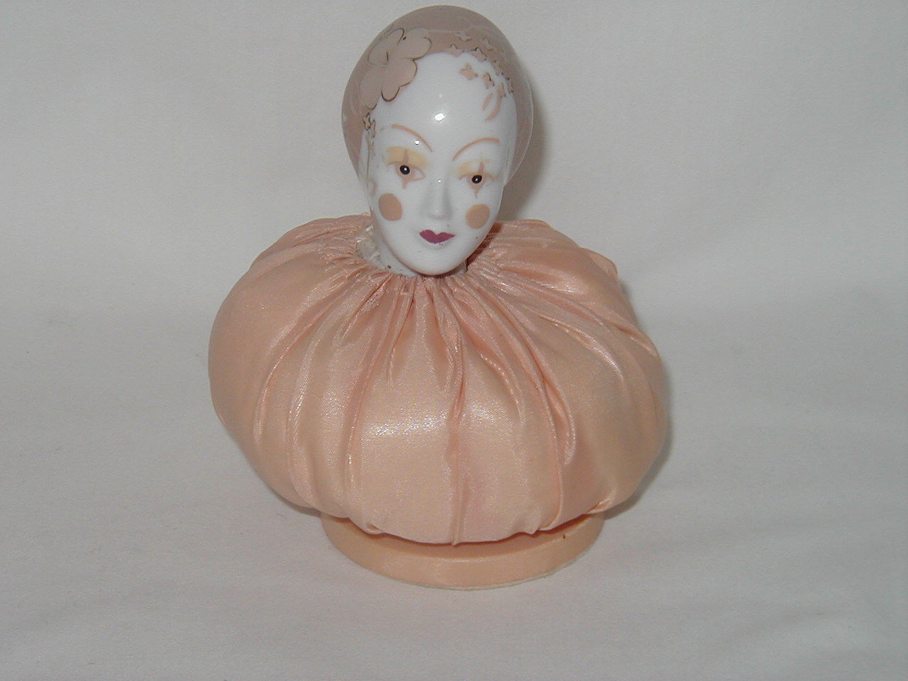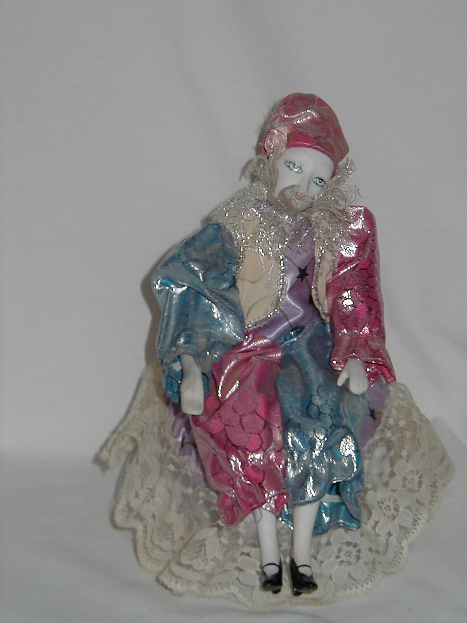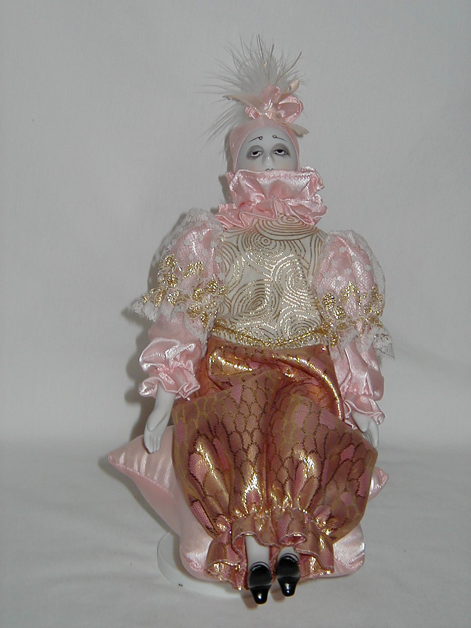 Carnival Lady in Pink and Blue on Cushion on Foot
