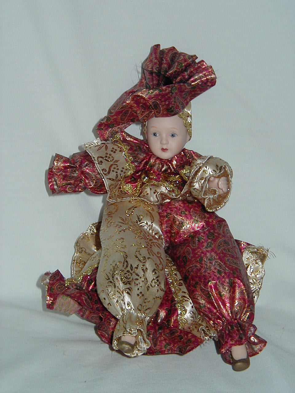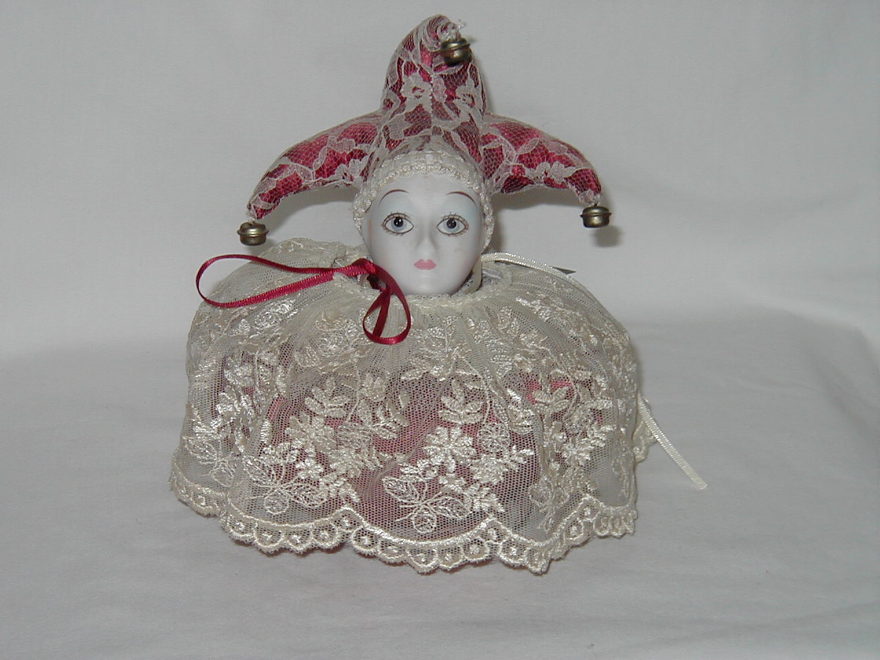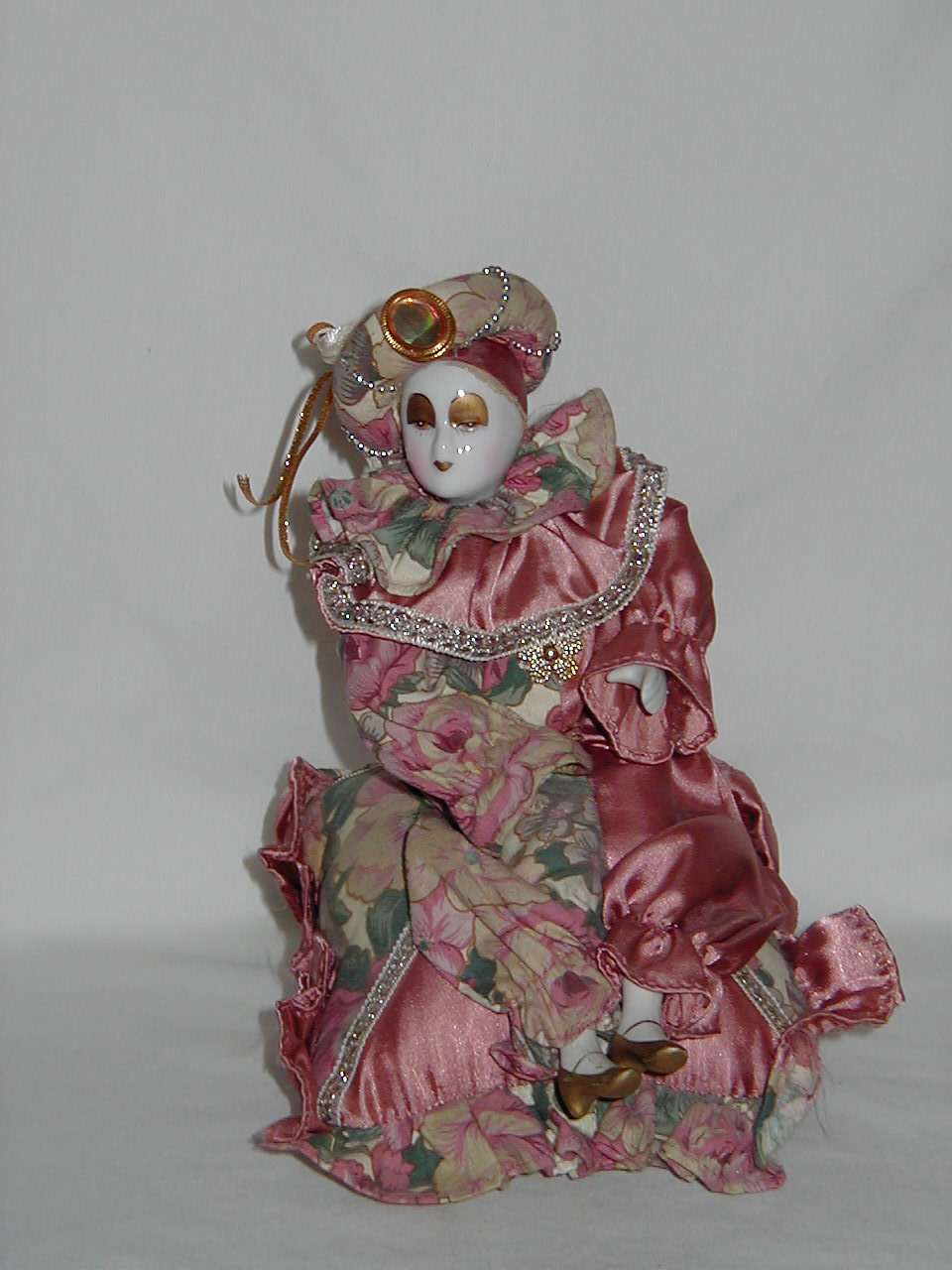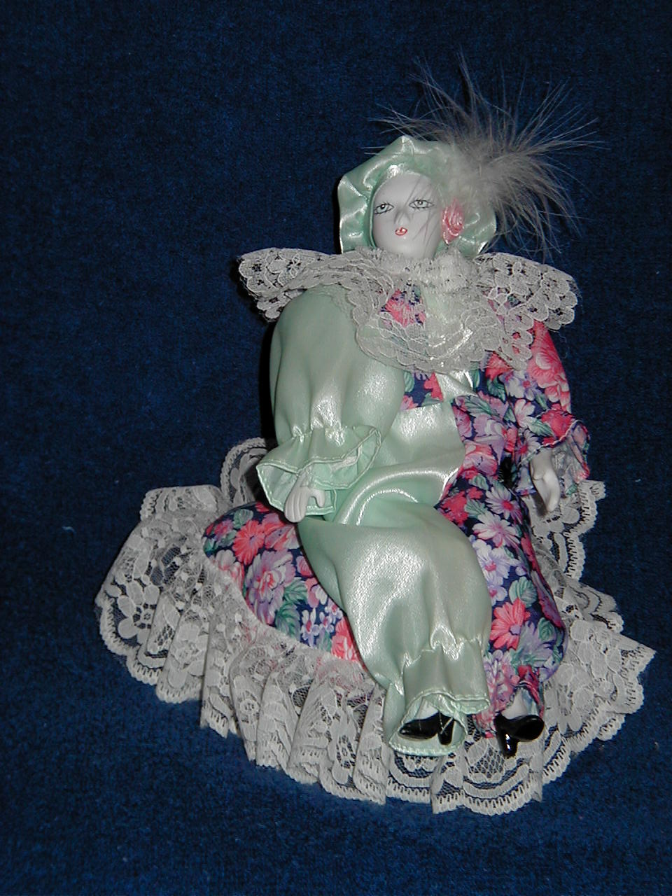 Carnival Lady in Pink and Blue on Cushion on Foot