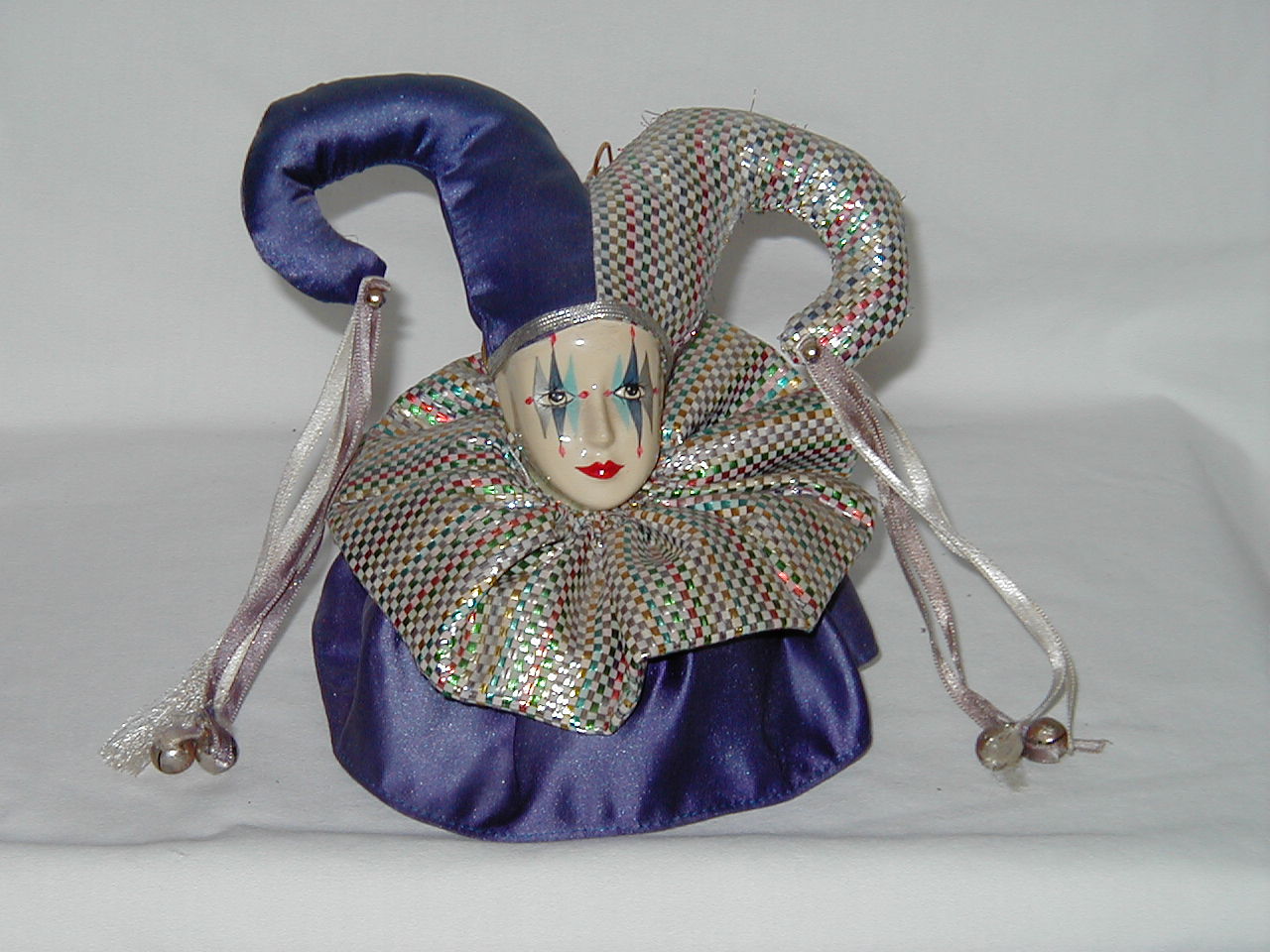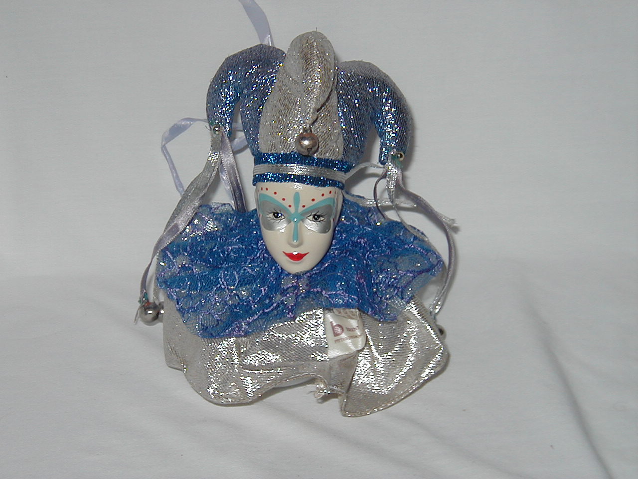 Brinn's Carnival Lady (Head) Blue and Silver with Three Pointed Hat