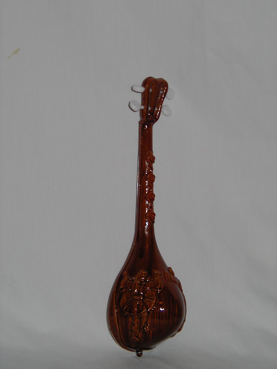 Back of Bouzouki shows dancing greek figures. |
