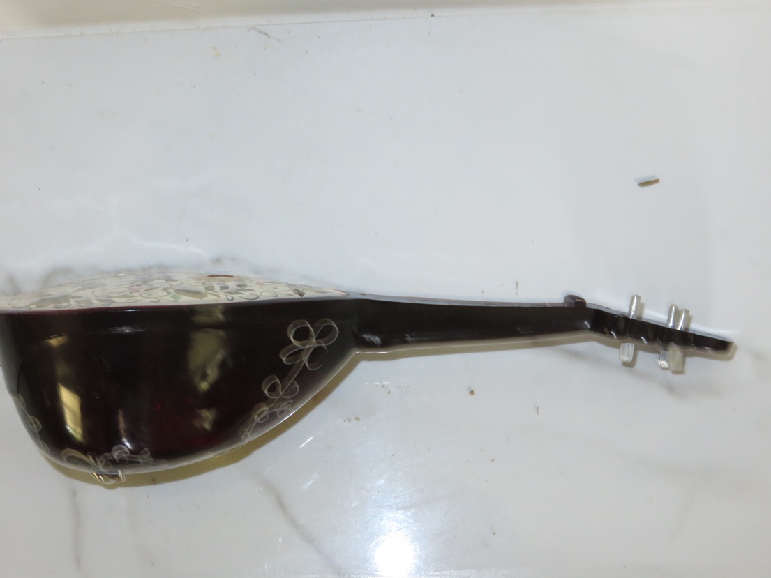 Medium. Body Excellent but no strings, one strap button missing, bar to seperate strings missing |