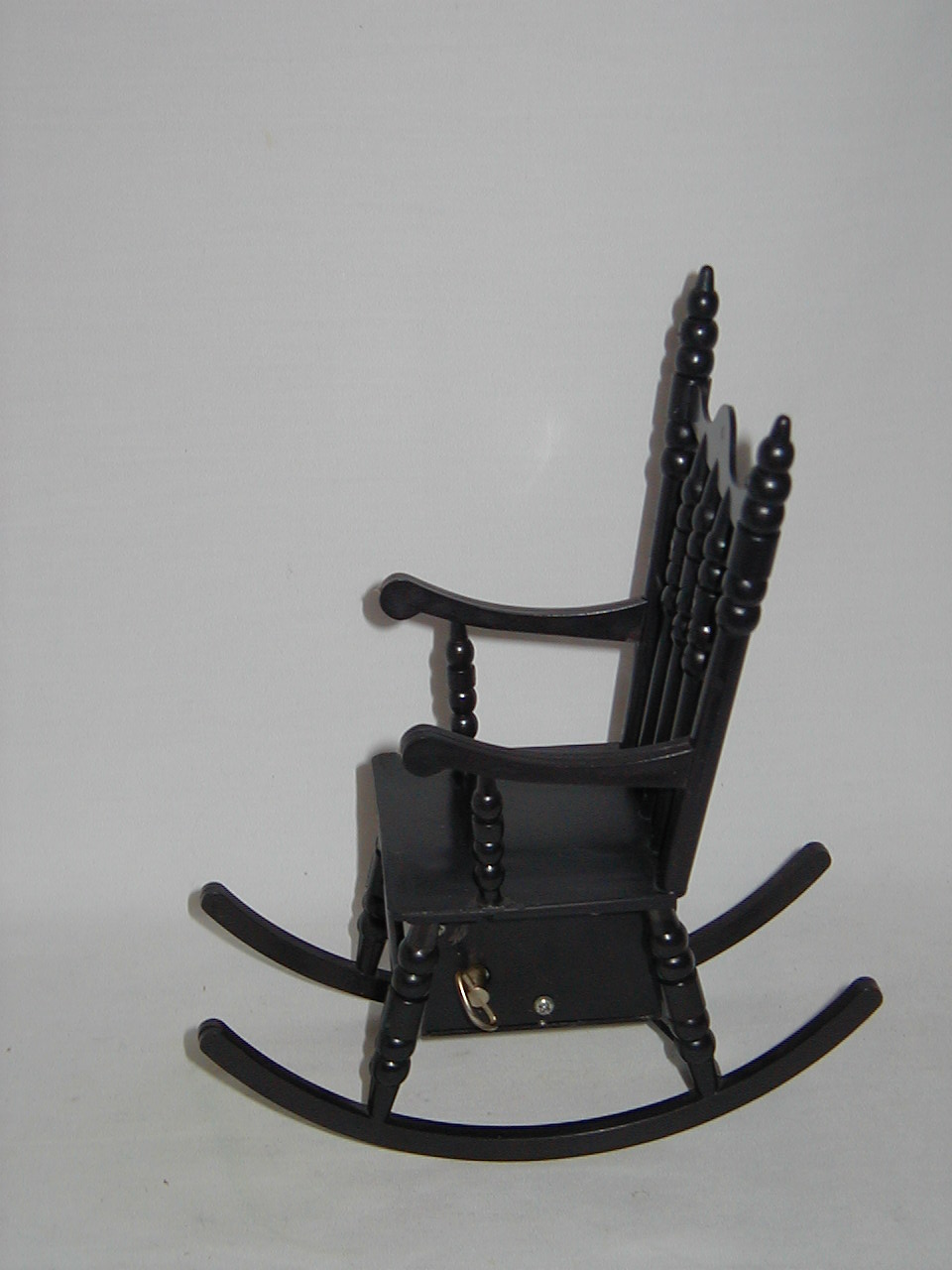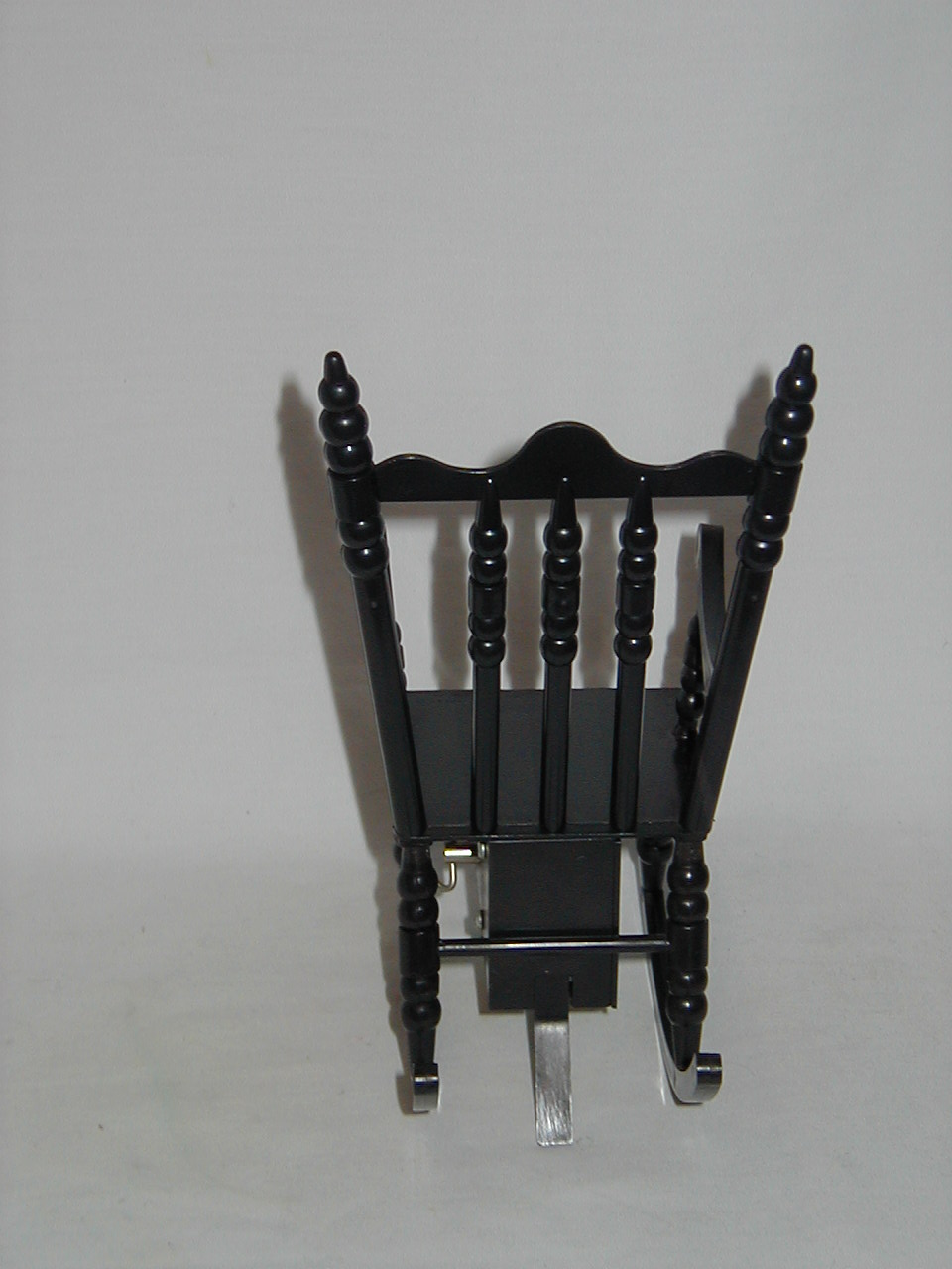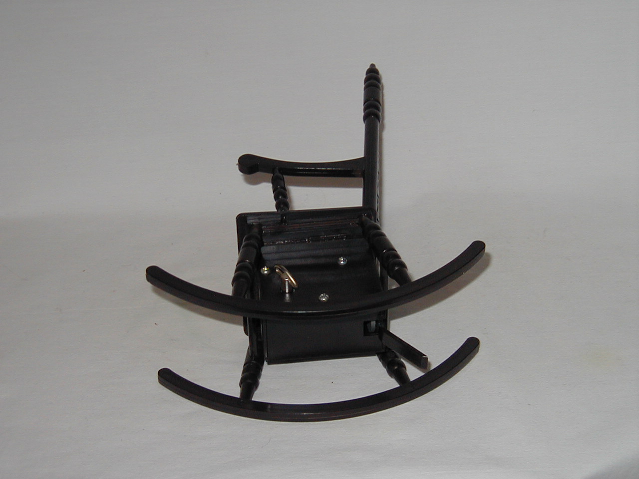 Plastic 'leg' in back middle rocks chair forward/backward with music. |