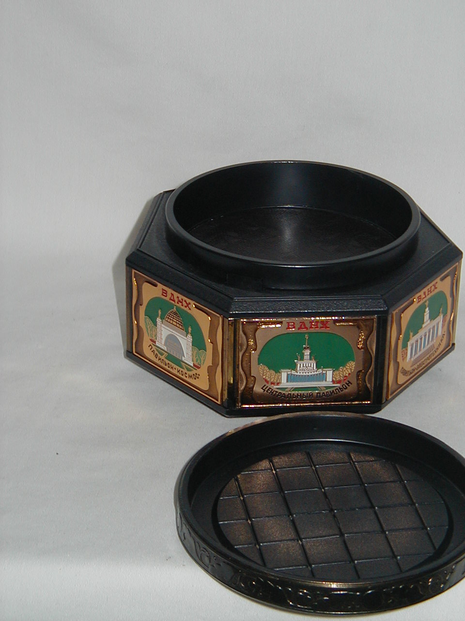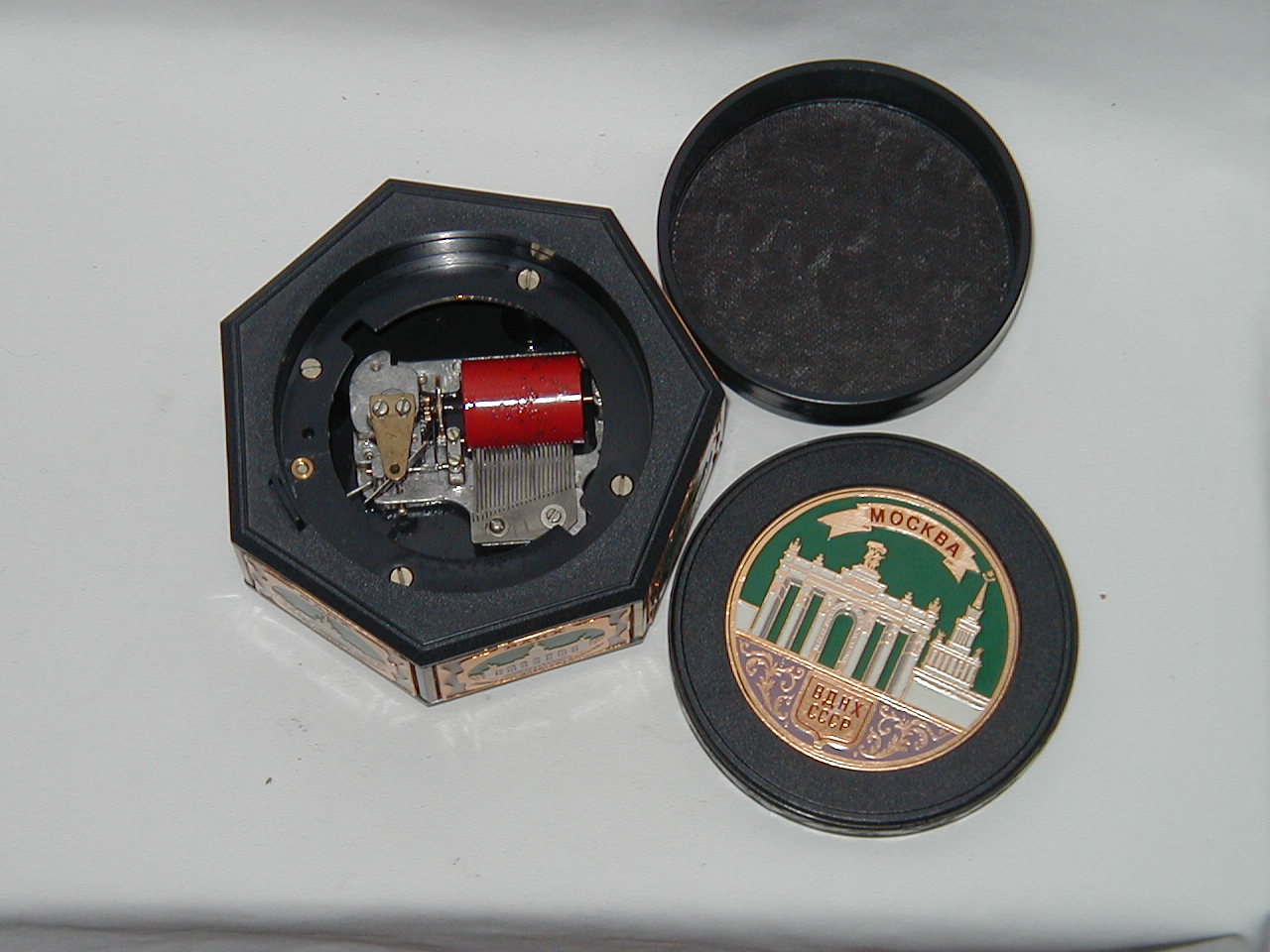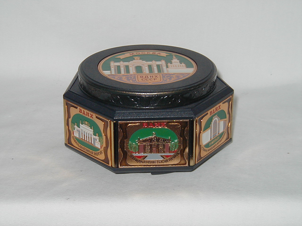 Top lid: Moscow ? SSSR (in cyrillic); side different names in cyrillic |