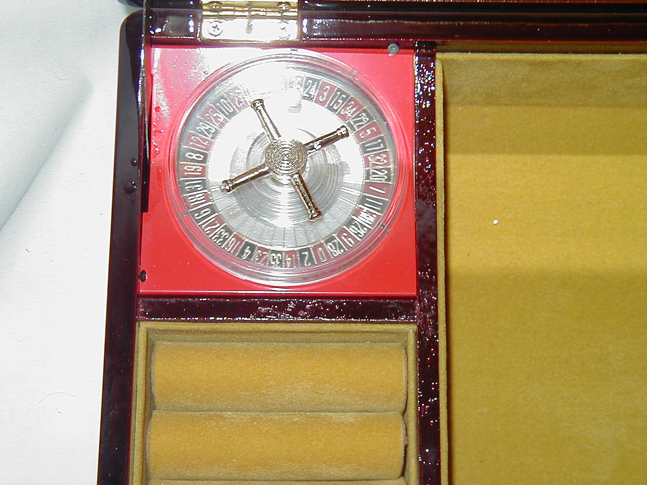 The roulette, with ball, is activated, i think by the left arm of the lid, on closing the lid. Also on/off switch for music, on opening/closing lid.