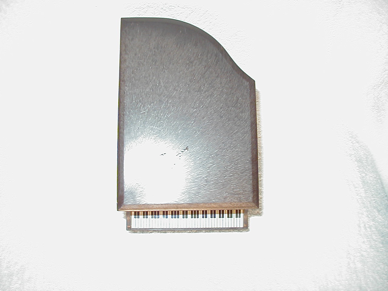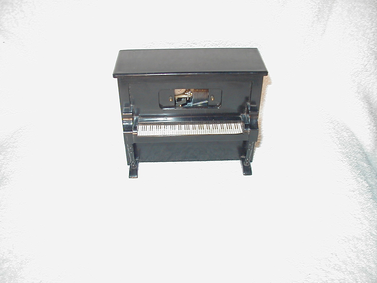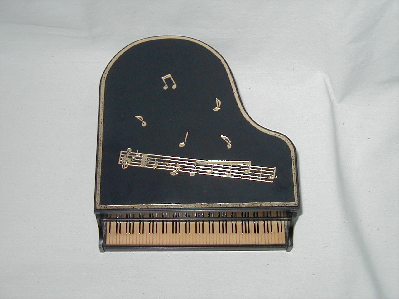 Goldtinted Metal Piano with Greenish Plastic Lid wit Boy with Harp