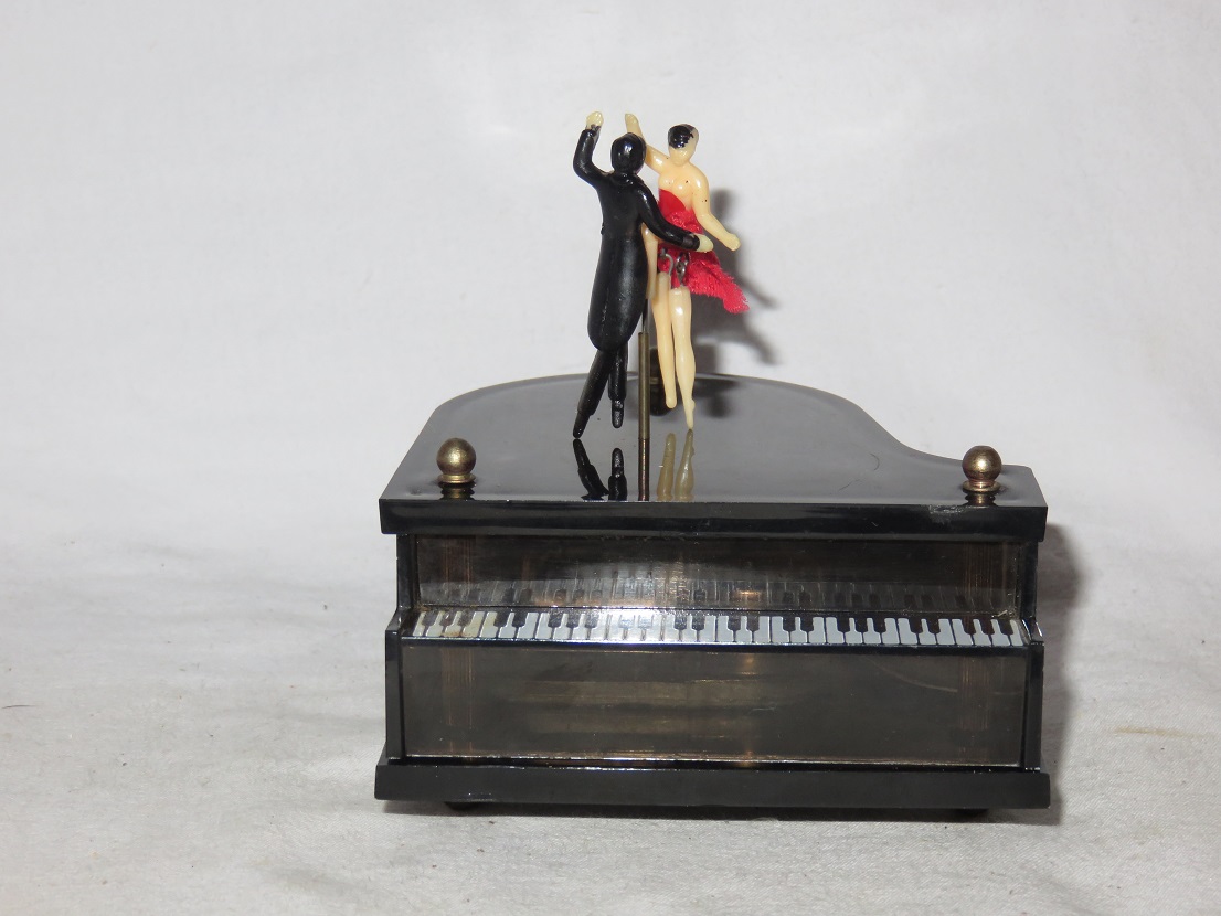 Black Plastic Piano with Rotating Dance Pair Brown Color