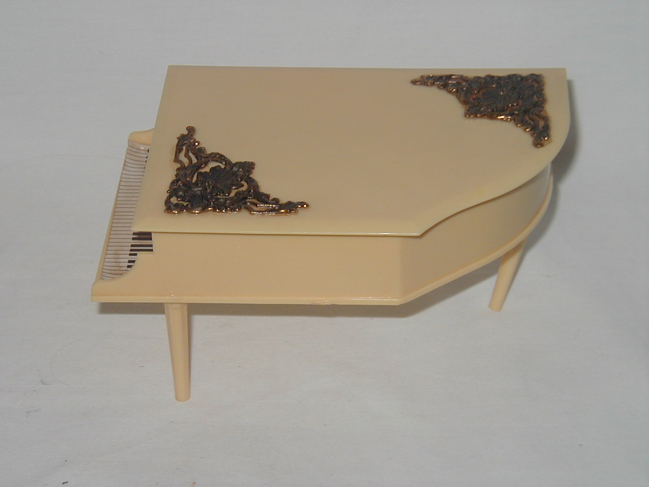 Fair, one leg a bit cranky, tear in paper keyboard, one metal work turned corner. |