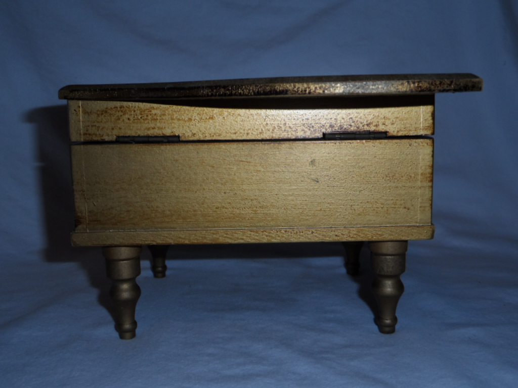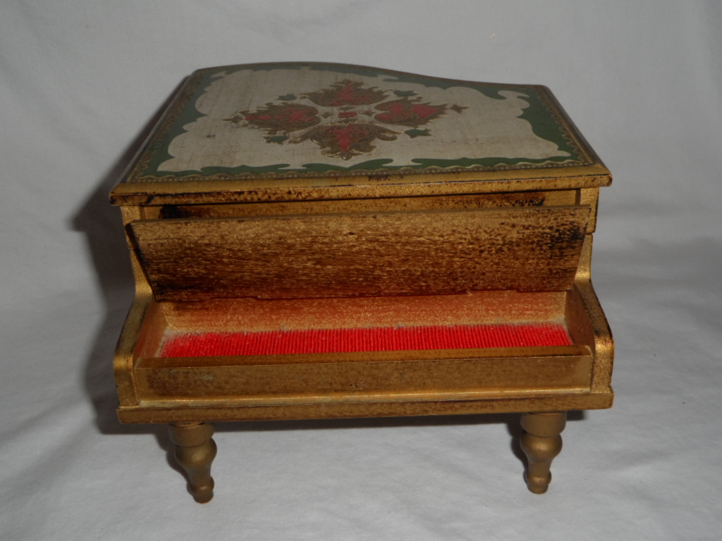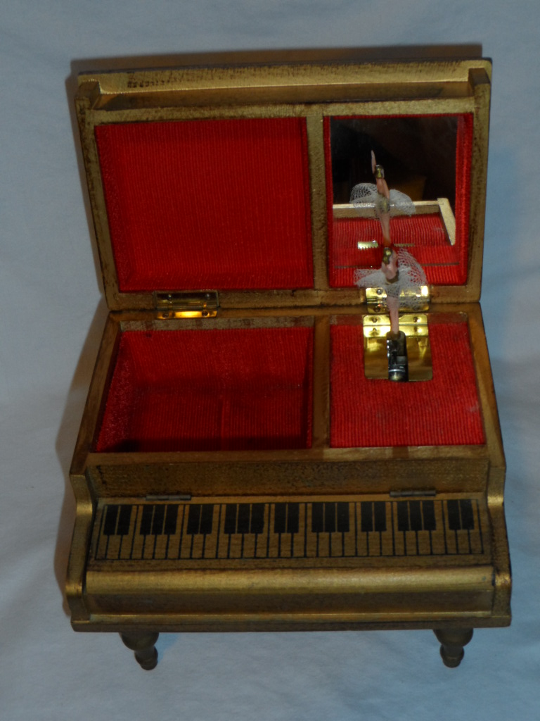 Medium, only because one arm ballerina broken off ( reglued, will not hold), no doubt by repeated foldiong lid. Otherwise good. |