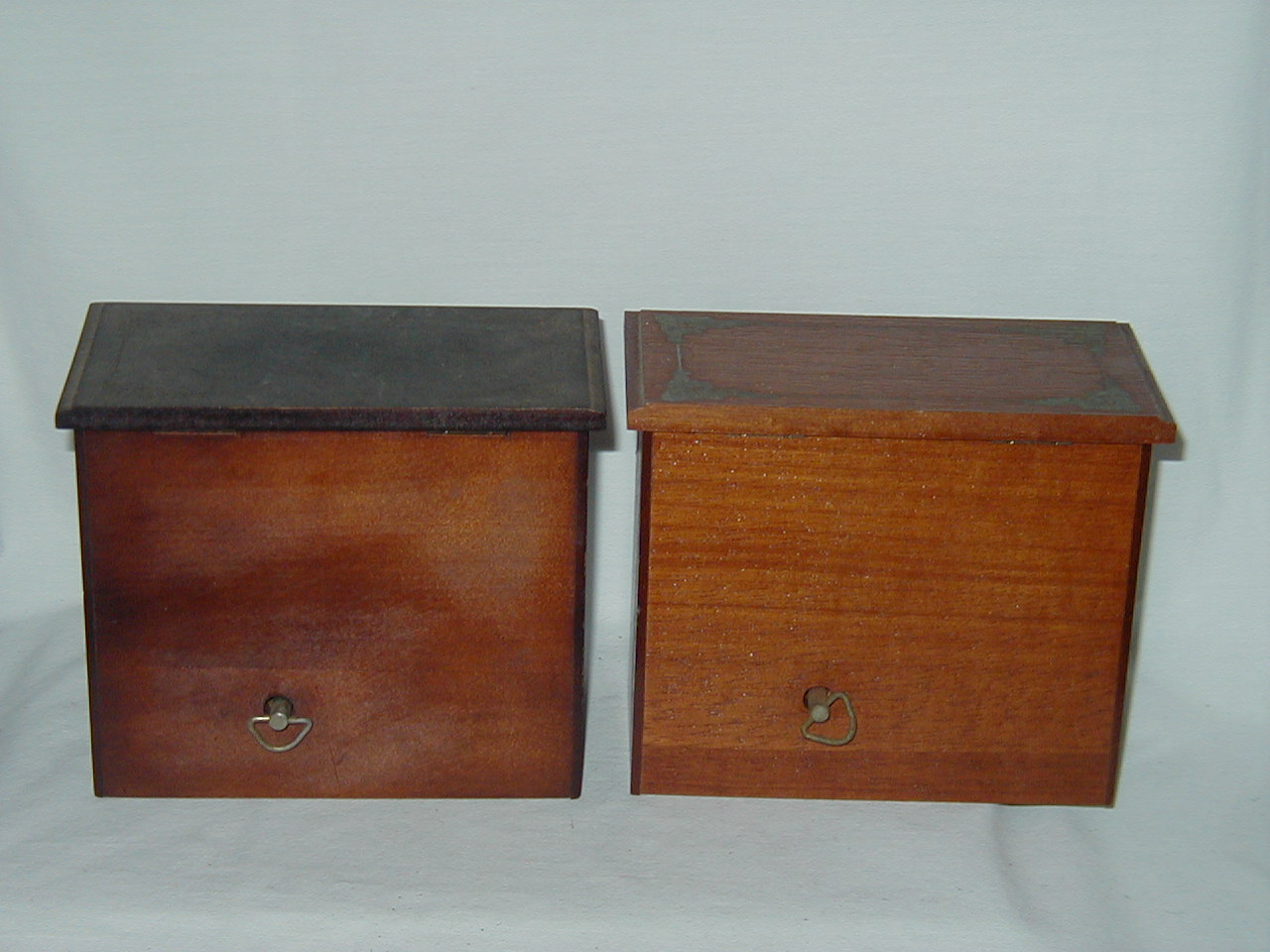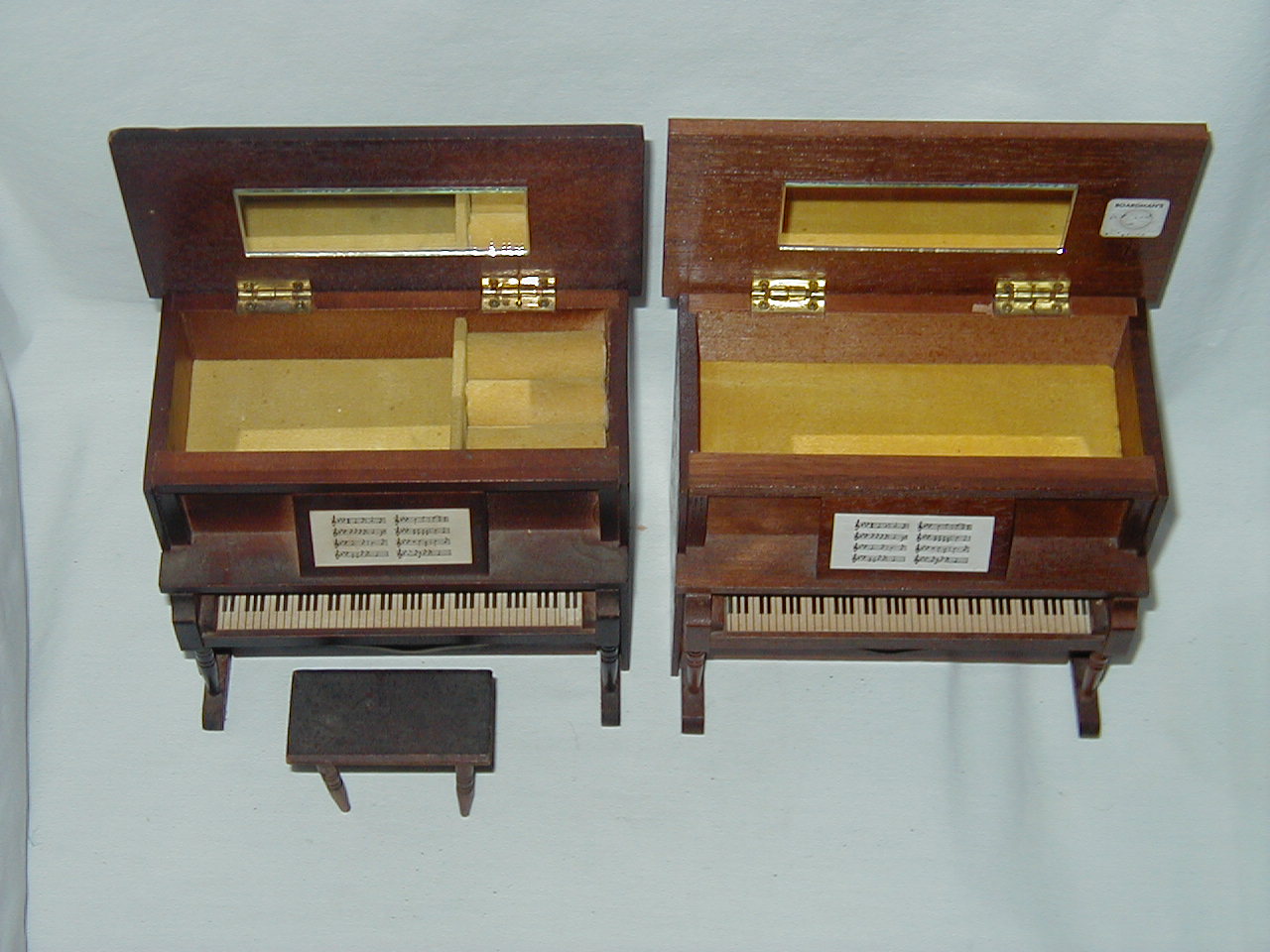 Similar, but some differences. One has stool, other missing. Inside box on top diffrenet, darker color one discolored |