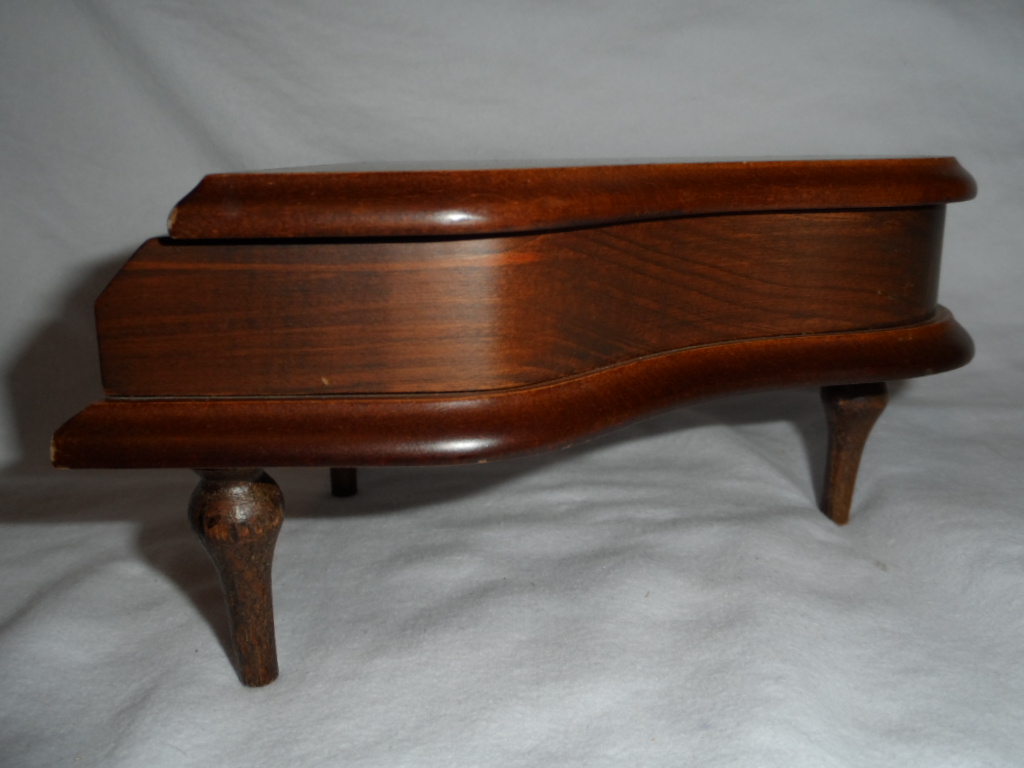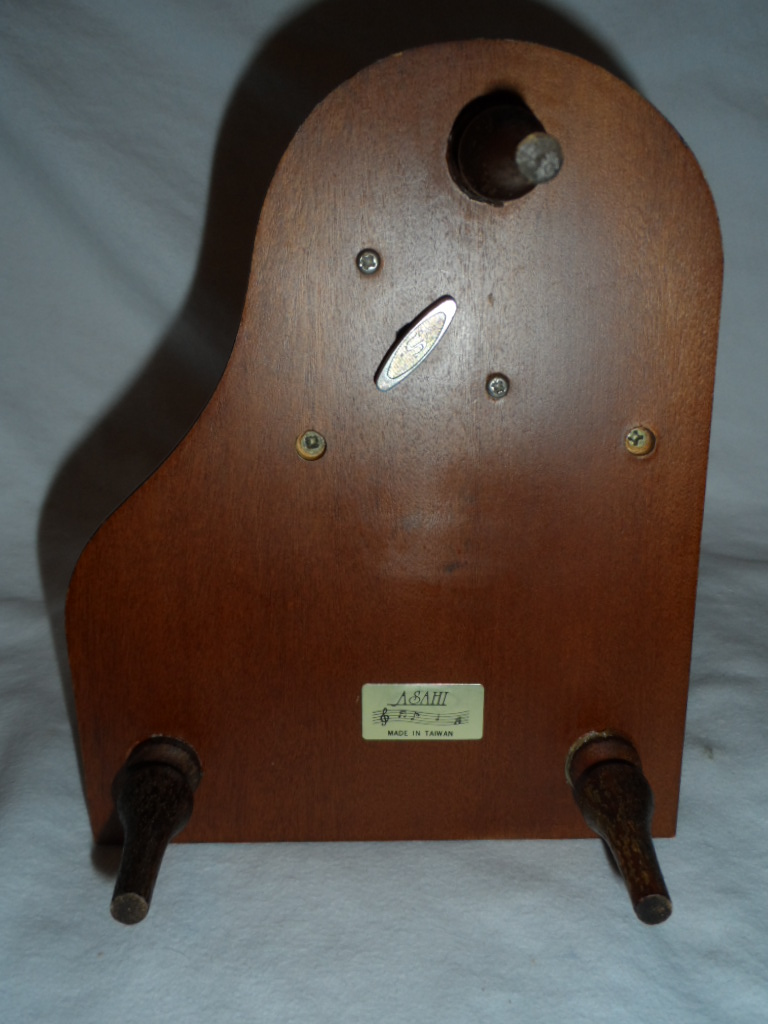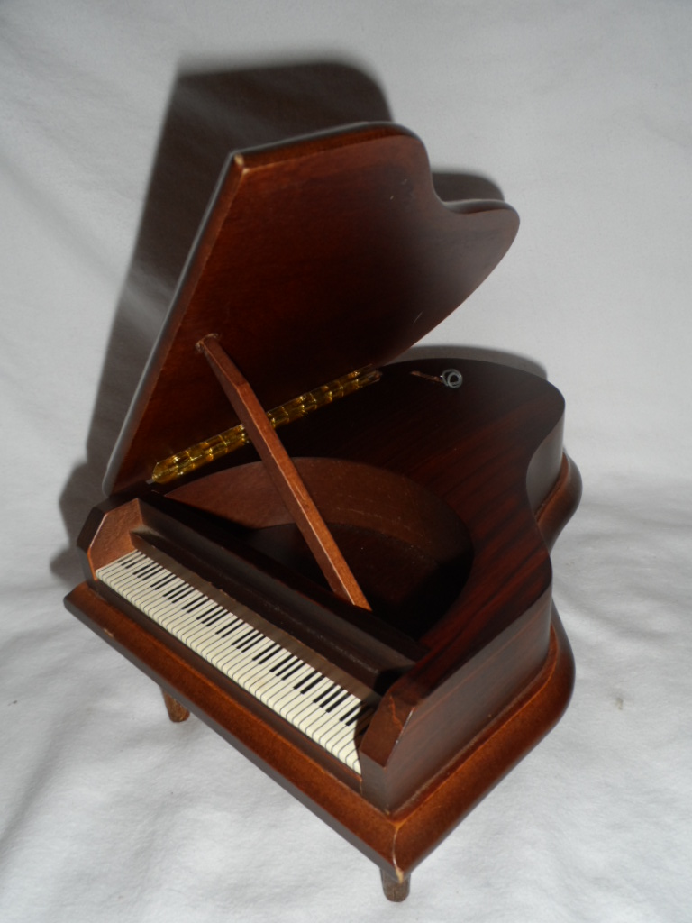 Lid over piano comes up and leans on stick. Legs reglued earlier. |