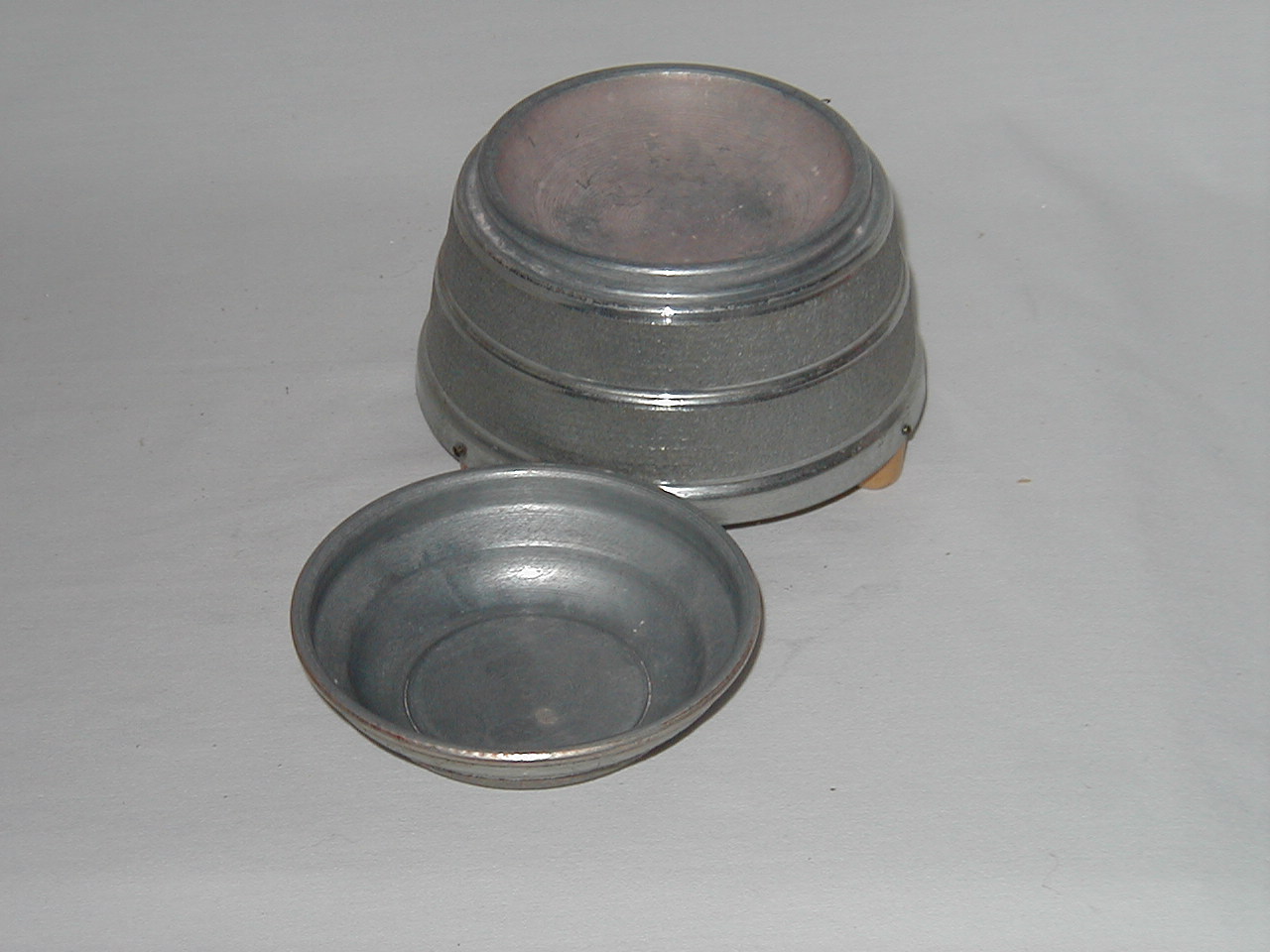 Metal with wood bottom and feet |