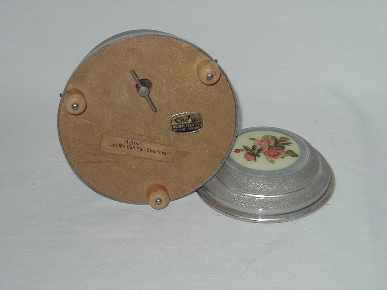 Plastic liner on top lid. Same roses motif as A 073 003. |