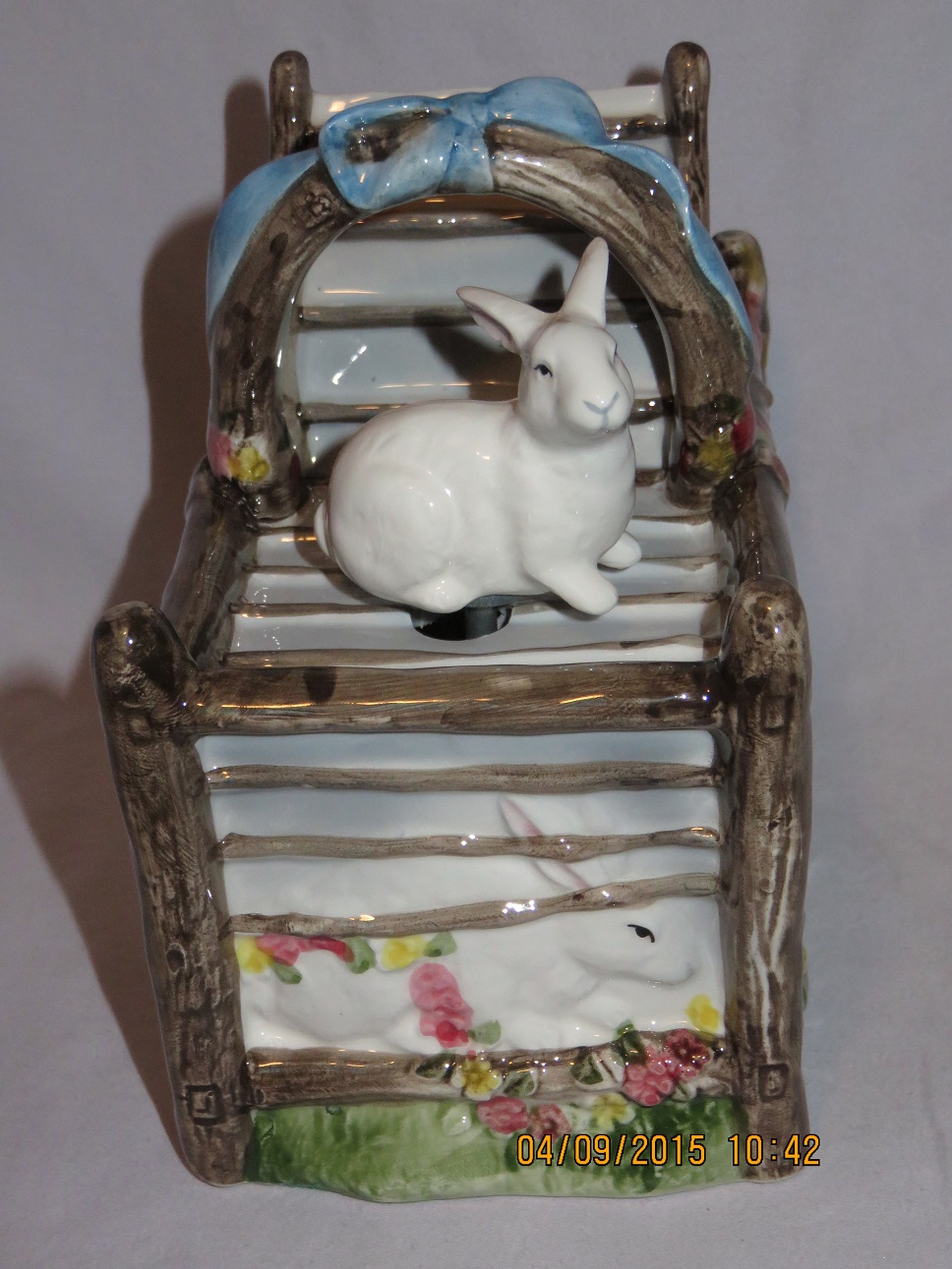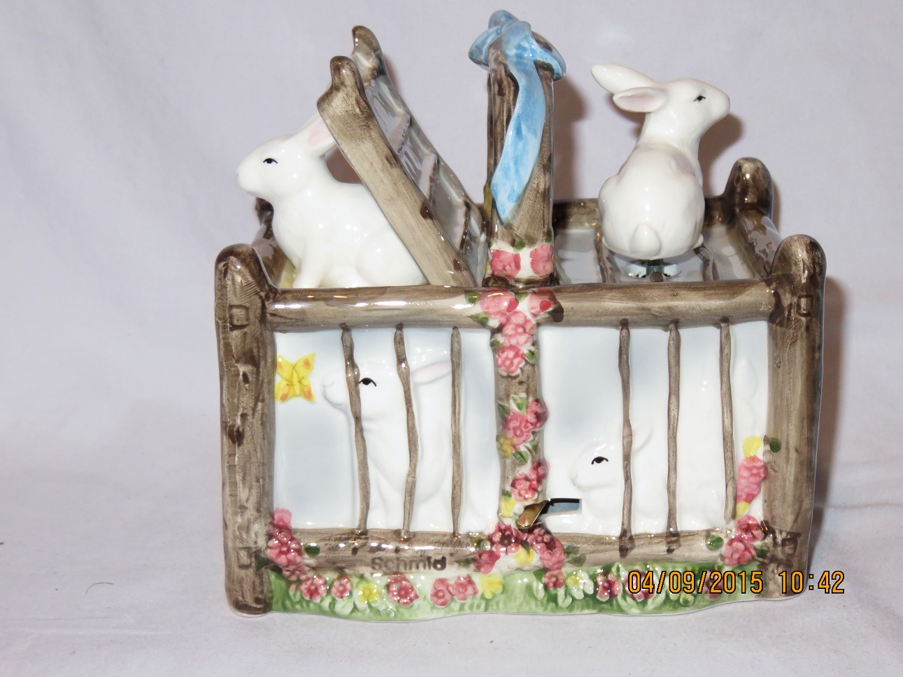 Rabbit on top rotates with music. |