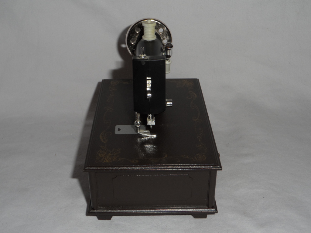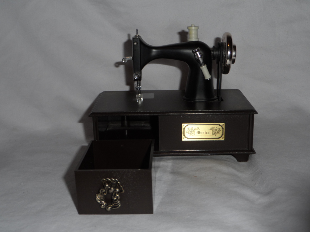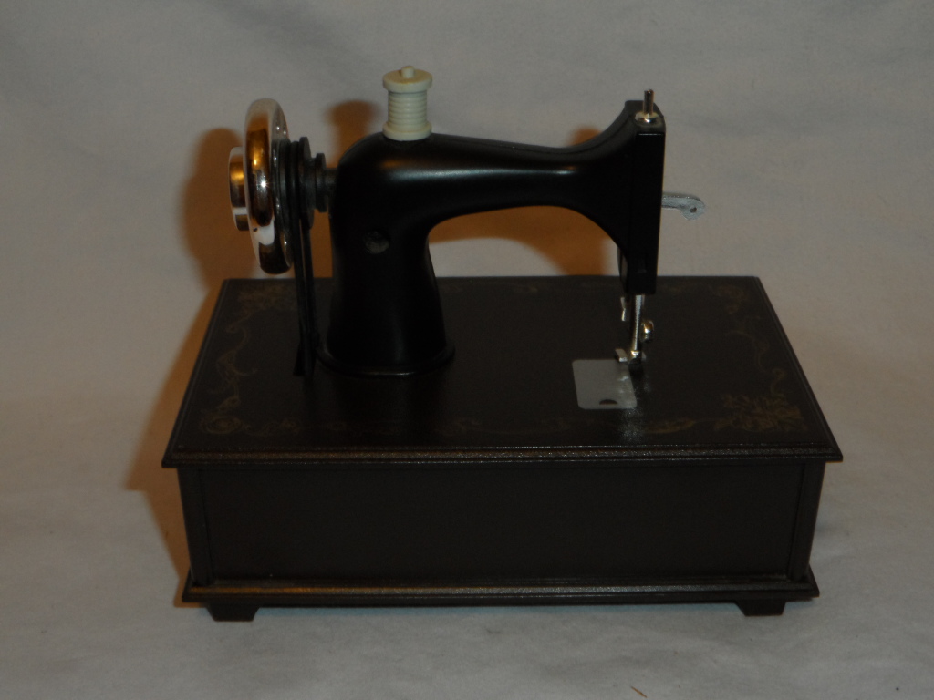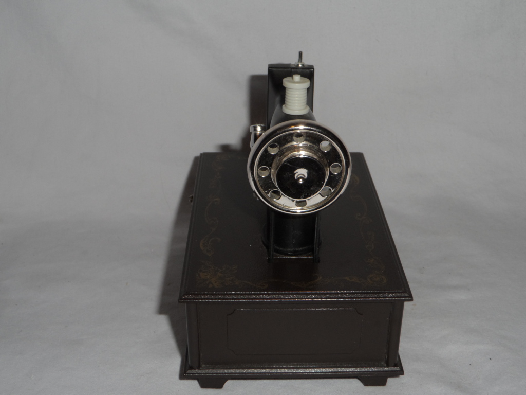 Wheel of sewing machine turns with music. |