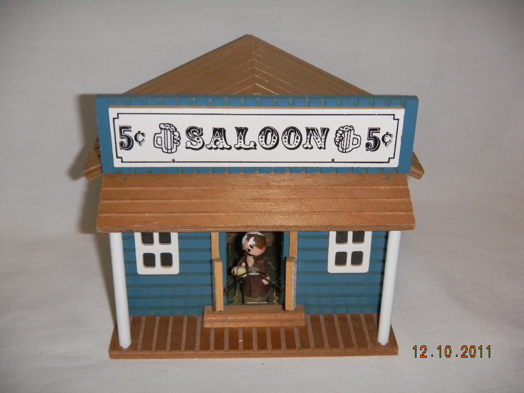 Door opens, man with bottle appears and retracts, door closes while music plays. |
