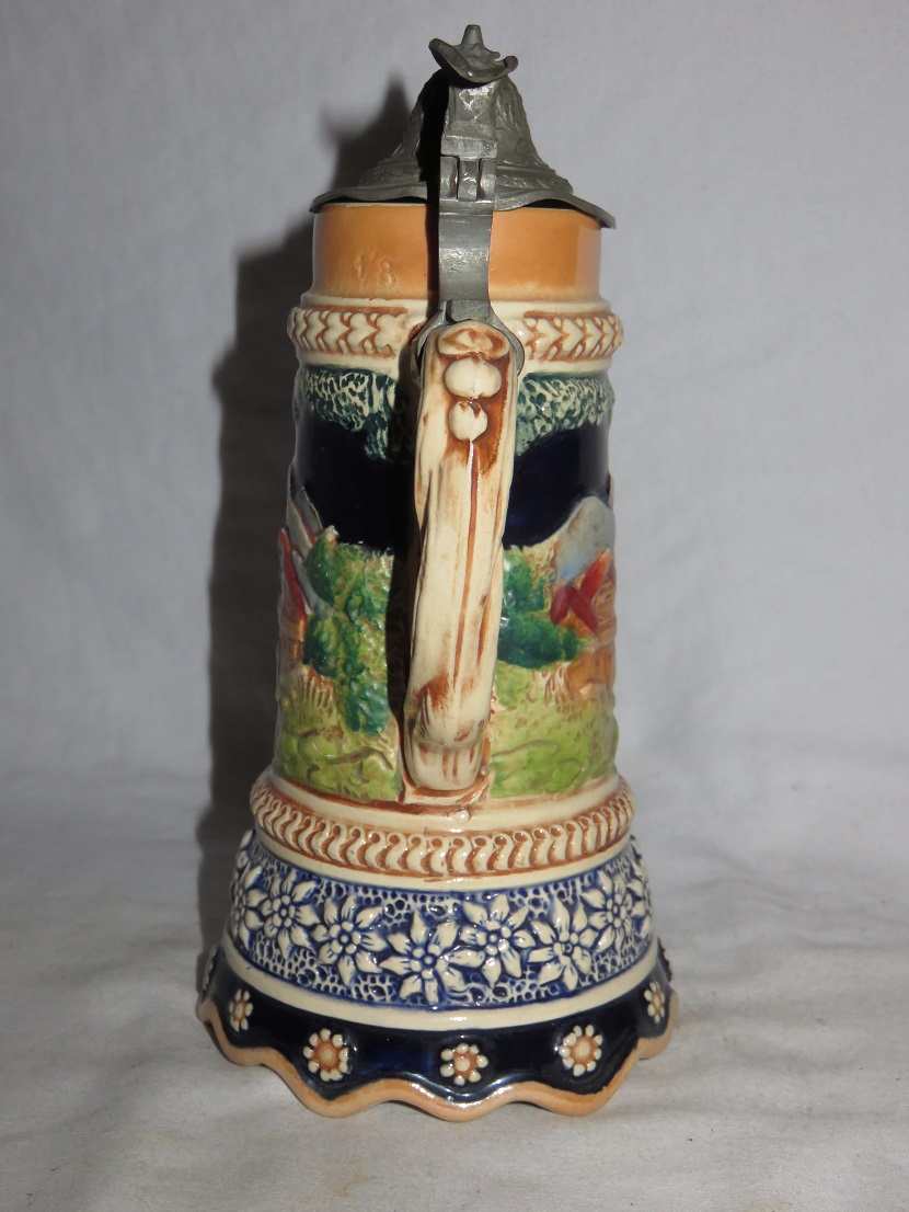 Under handle on stein ' 1821 '.(Death of Napoleon?) Stein bottom tapers (expanding flared or spreading towards end). |