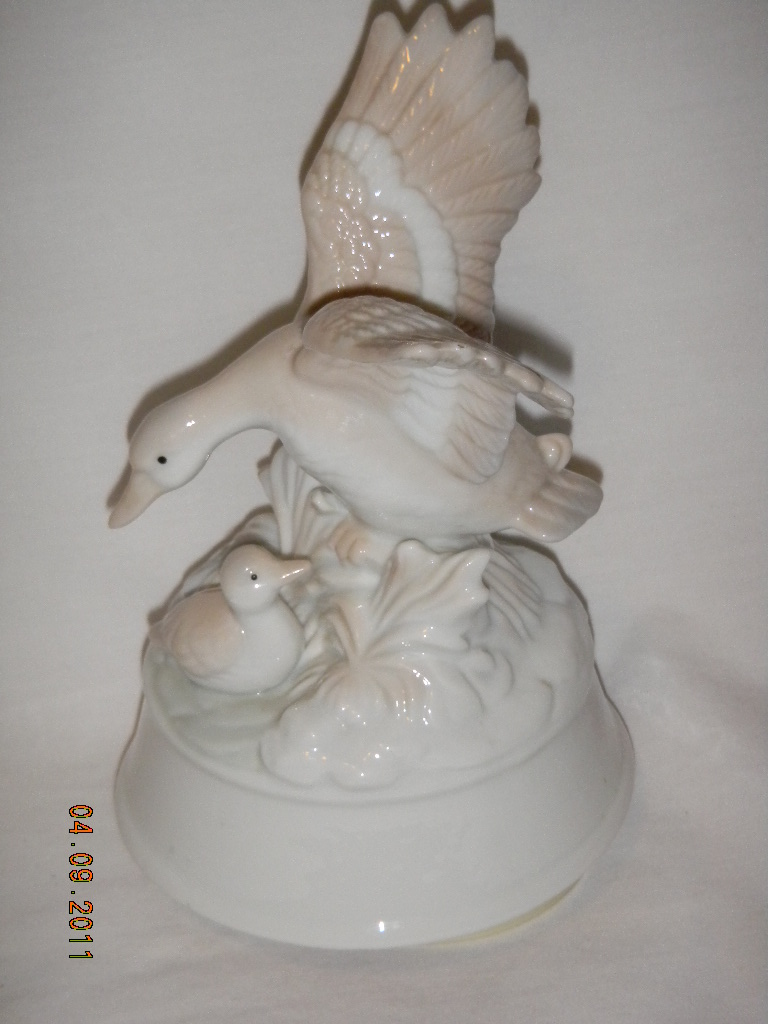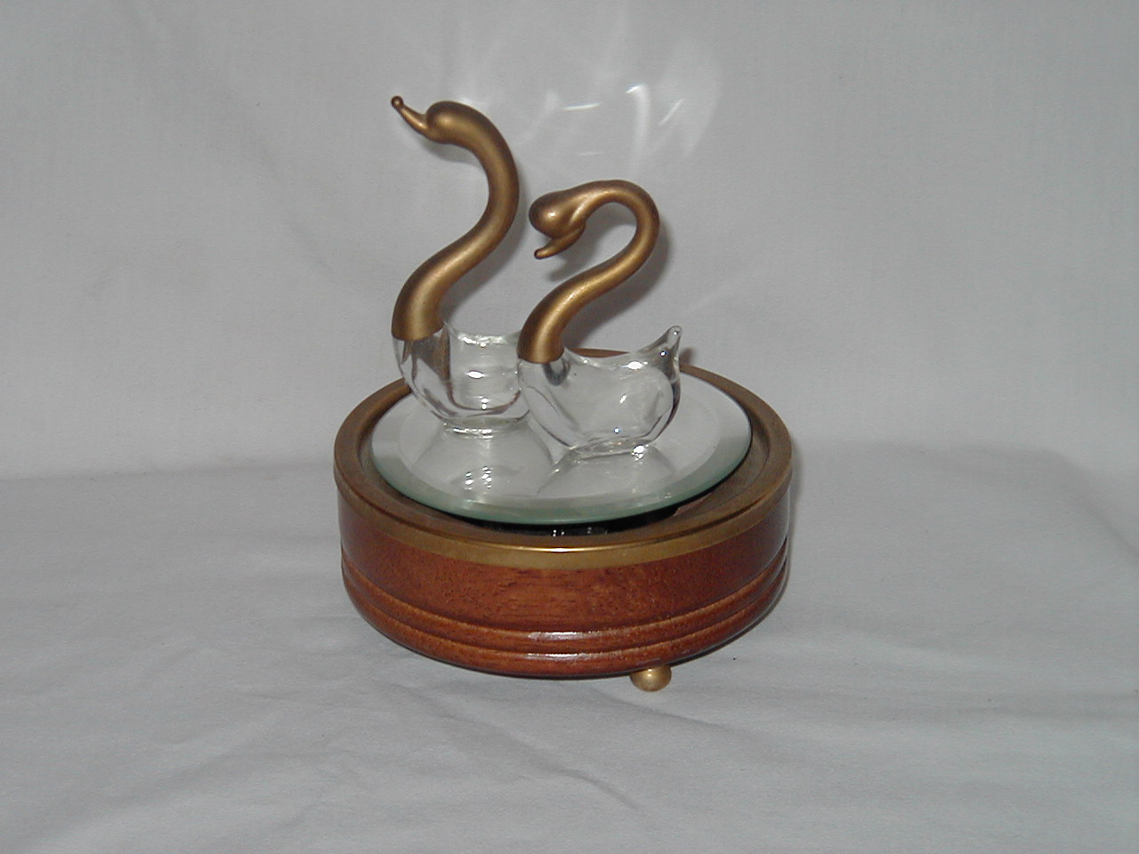 Jordan Originals Two Swans One Hovering over Other on Wood Pedestal