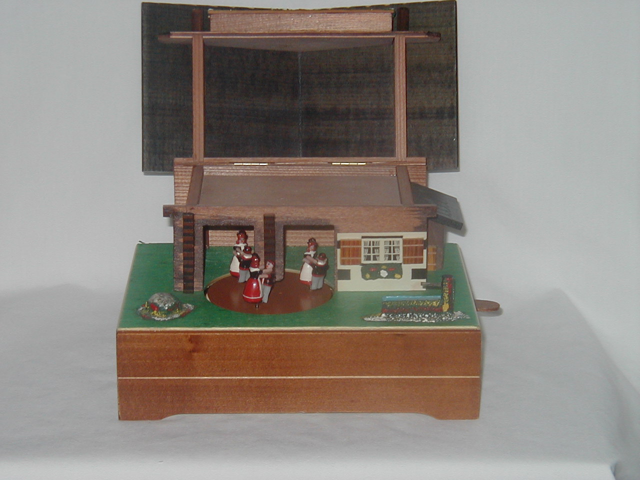 Platform rotates and 3 pairs rotate on platform when music plays. |