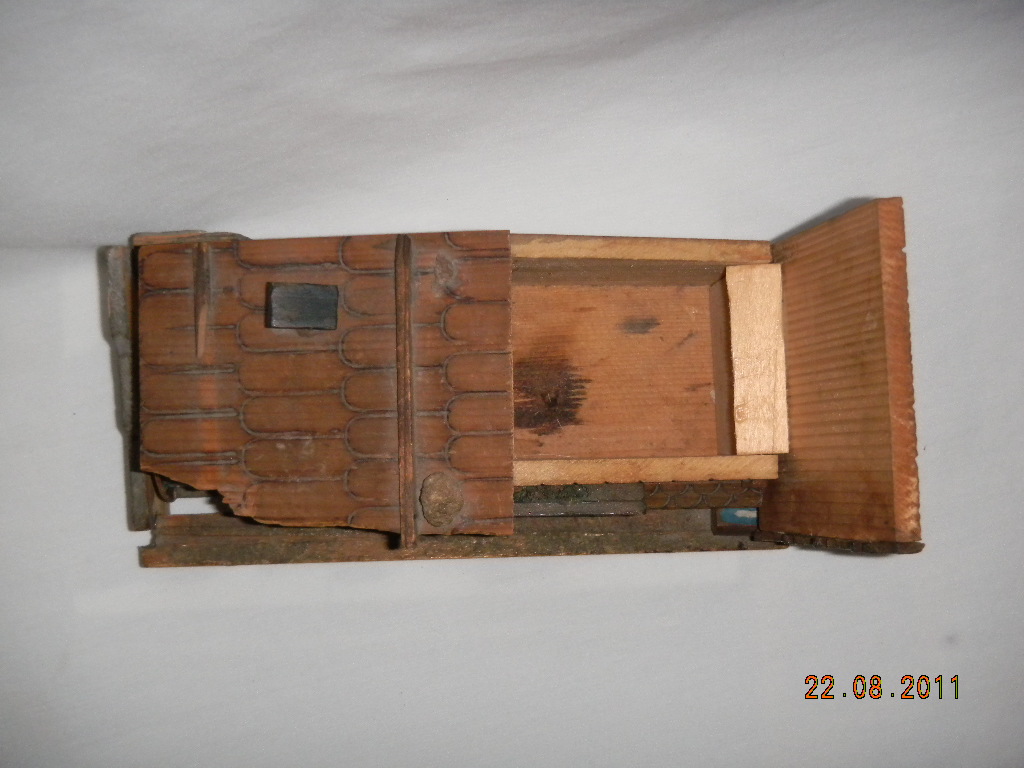 Minor. Part roof broken off, front bottom rim broken off (rewglued), one foor replaced, maybe parts missing, mech. repositioned (hole in back). |